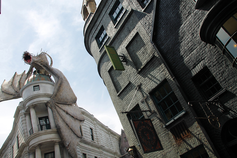 Sitting atop Gringotts, the Ukrainian Ironbelly instantly grabs your attention as you enter through the “moving” bricks. Visitors would stand throughout Diagon Alley, all with cameras and phones pointed directly at the dragon, waiting for the fire to erupt from its mouth; applauding and cheering with each flaming breath.