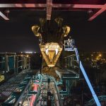 Busch Gardens Tampa Bay just completed construction on the two highest points of its unique, reptile-themed coaster, Cobra’s Curse — a menacing 30,000 lb. snake king icon and a 70-foot vertical lift that will take riders within inches of its 4-ft. fangs.