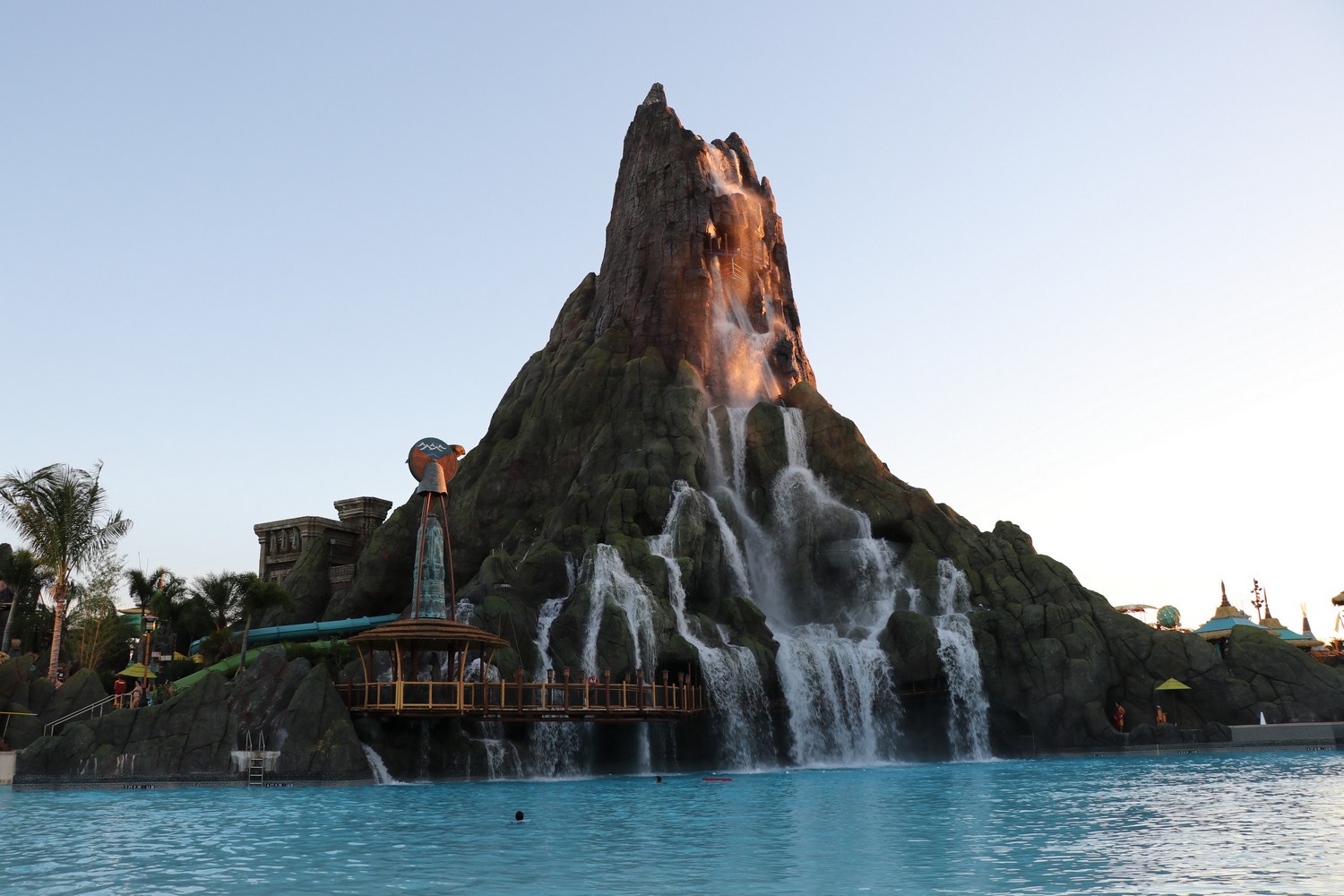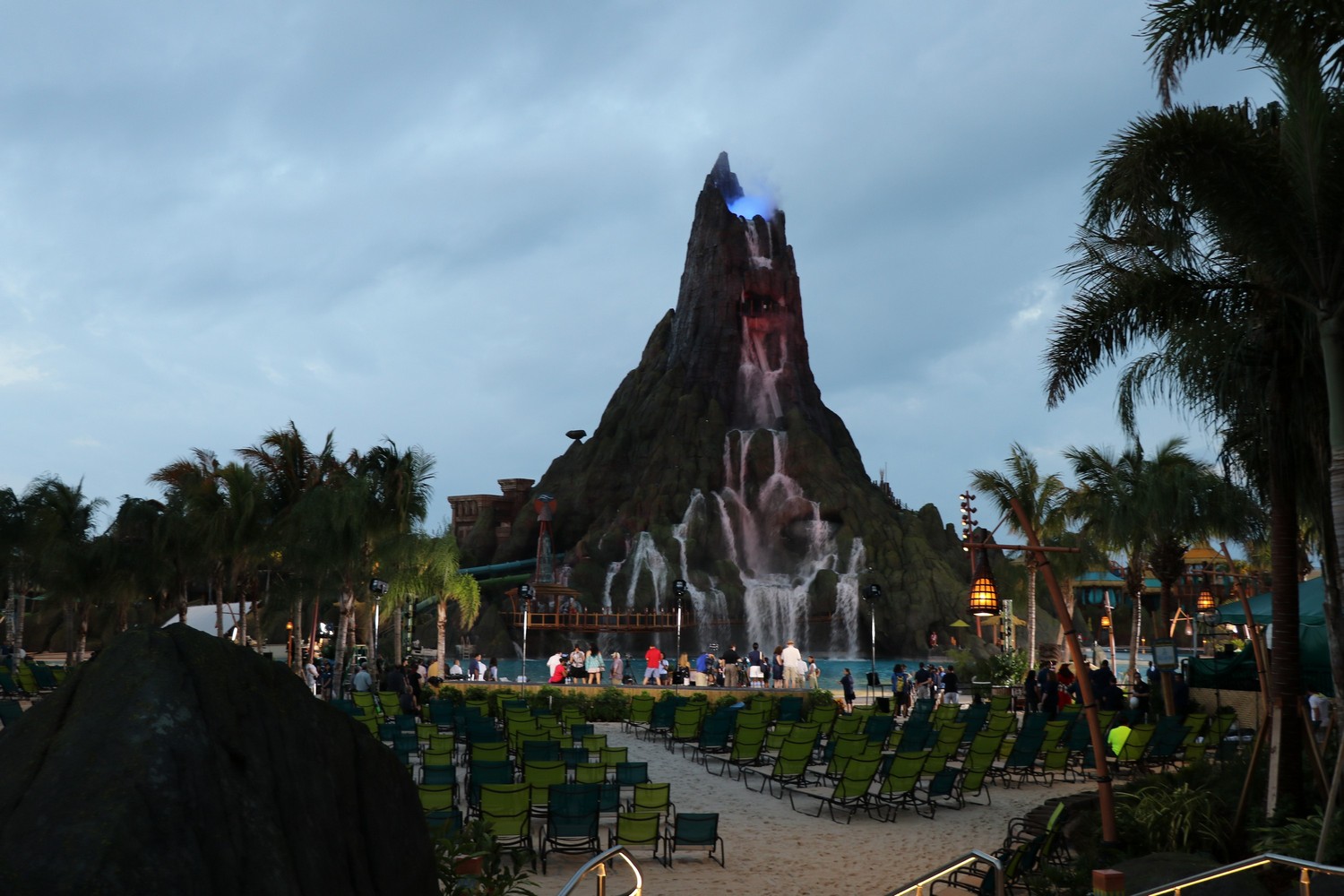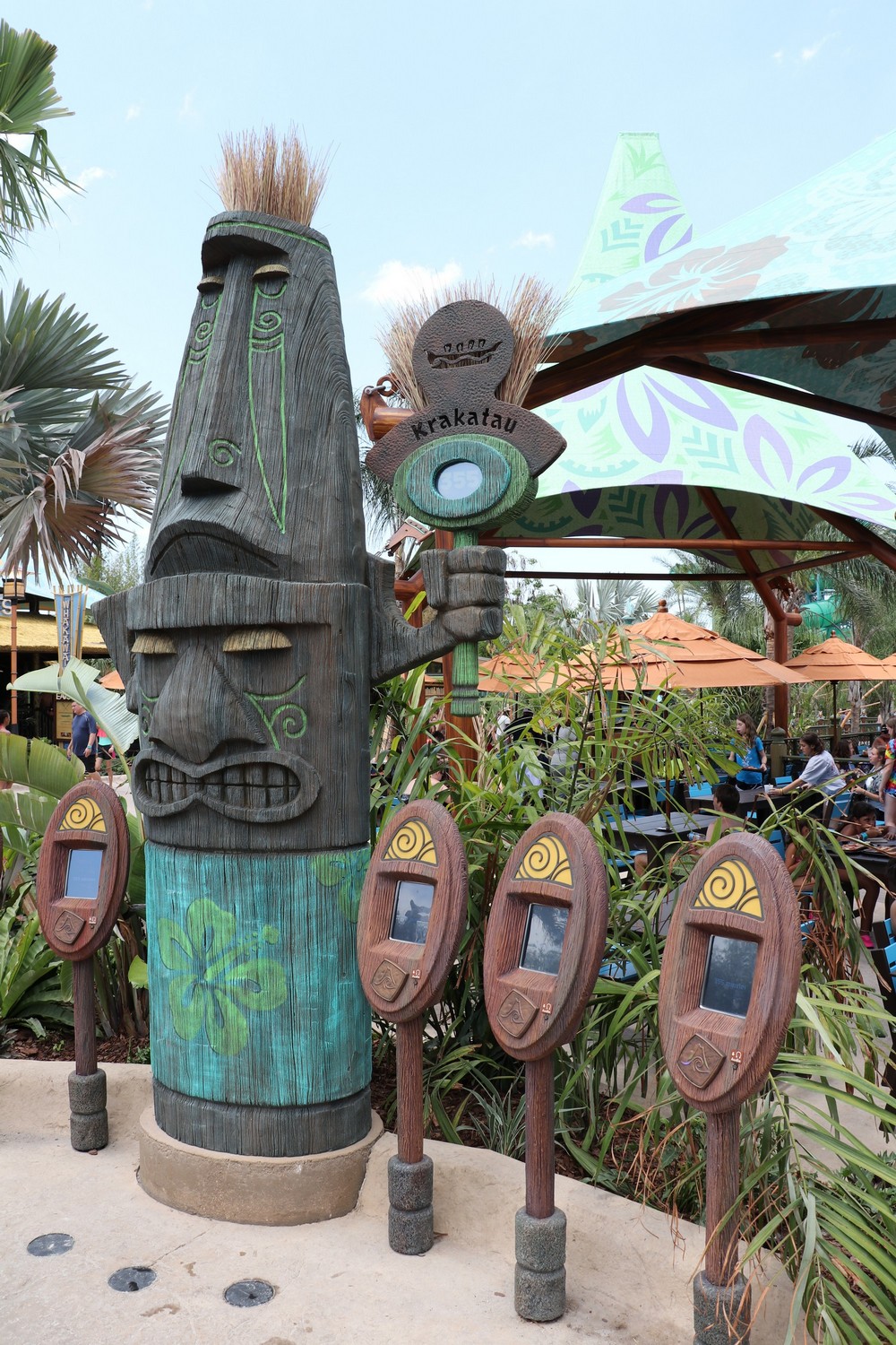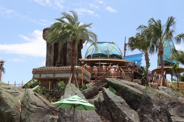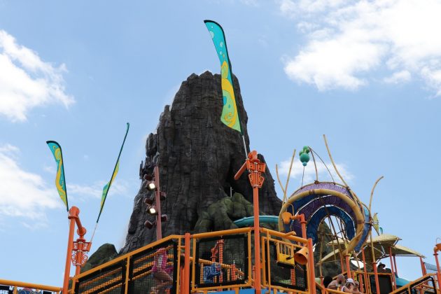 Of course, the big selling point of the beach is the view of Krakatau – it never gets old. From the misty vent at the top, to the beautiful cascading waterfalls, there is no better view in any of the Orlando parks. The design on Krakatau is exceptionally done, as you’ll be able to spot many tiki faces carved into the rocks, either subtly or prominently.