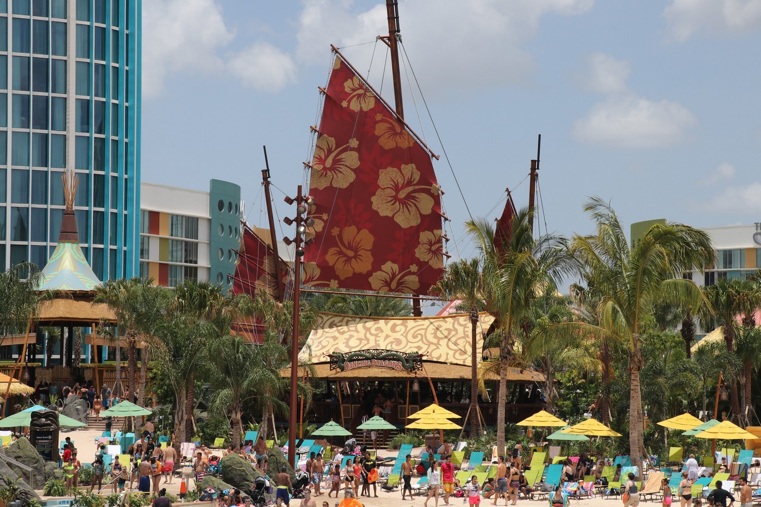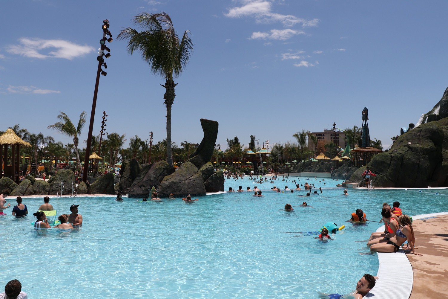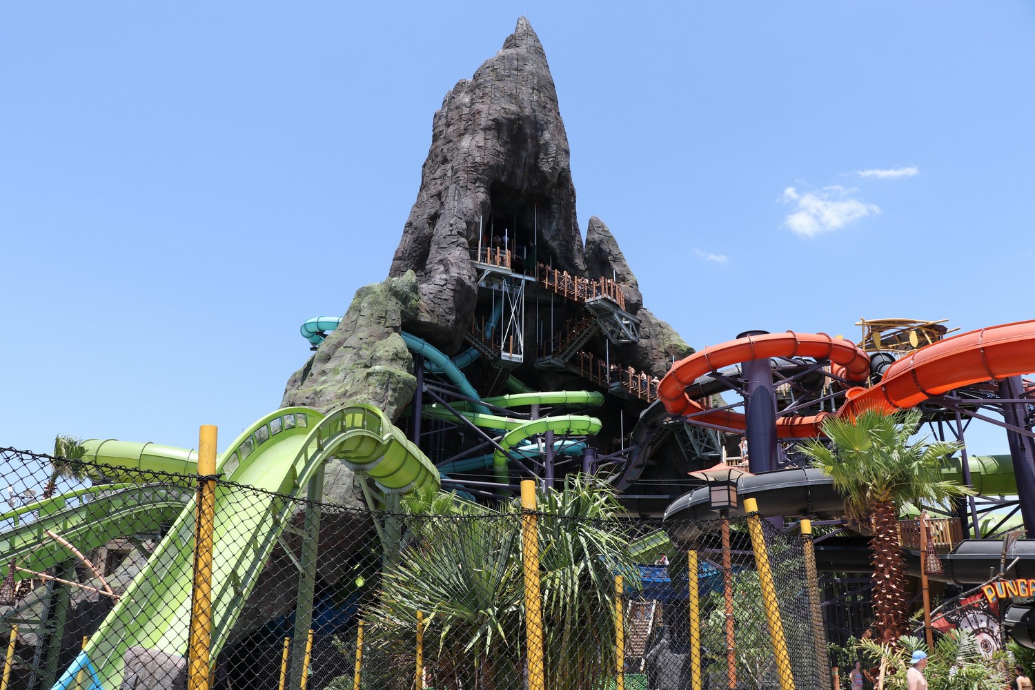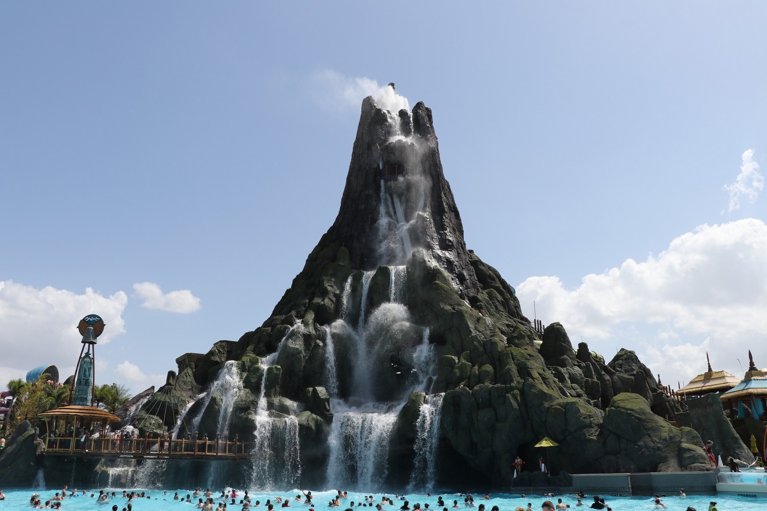 Of course, the big selling point of the beach is the view of Krakatau – it never gets old. From the misty vent at the top, to the beautiful cascading waterfalls, there is no better view in any of the Orlando parks. The design on Krakatau is exceptionally done, as you’ll be able to spot many tiki faces carved into the rocks, either subtly or prominently.