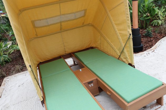 While we didn’t rent a cabana, we sniffed around a few around the park that makes us want to rent one for our next visit with a big group. If you are planning to visit Volcano Bay with a good-sized group, we can’t encourage renting a cabana enough. Each cabana comes with padded lounge chairs, a small refrigerator stocked with bottled water, complimentary fruit and snack basket, towel and locker service, plus concierge service with an exclusive menu of food and drink delivered directly to the cabana. The biggest selling