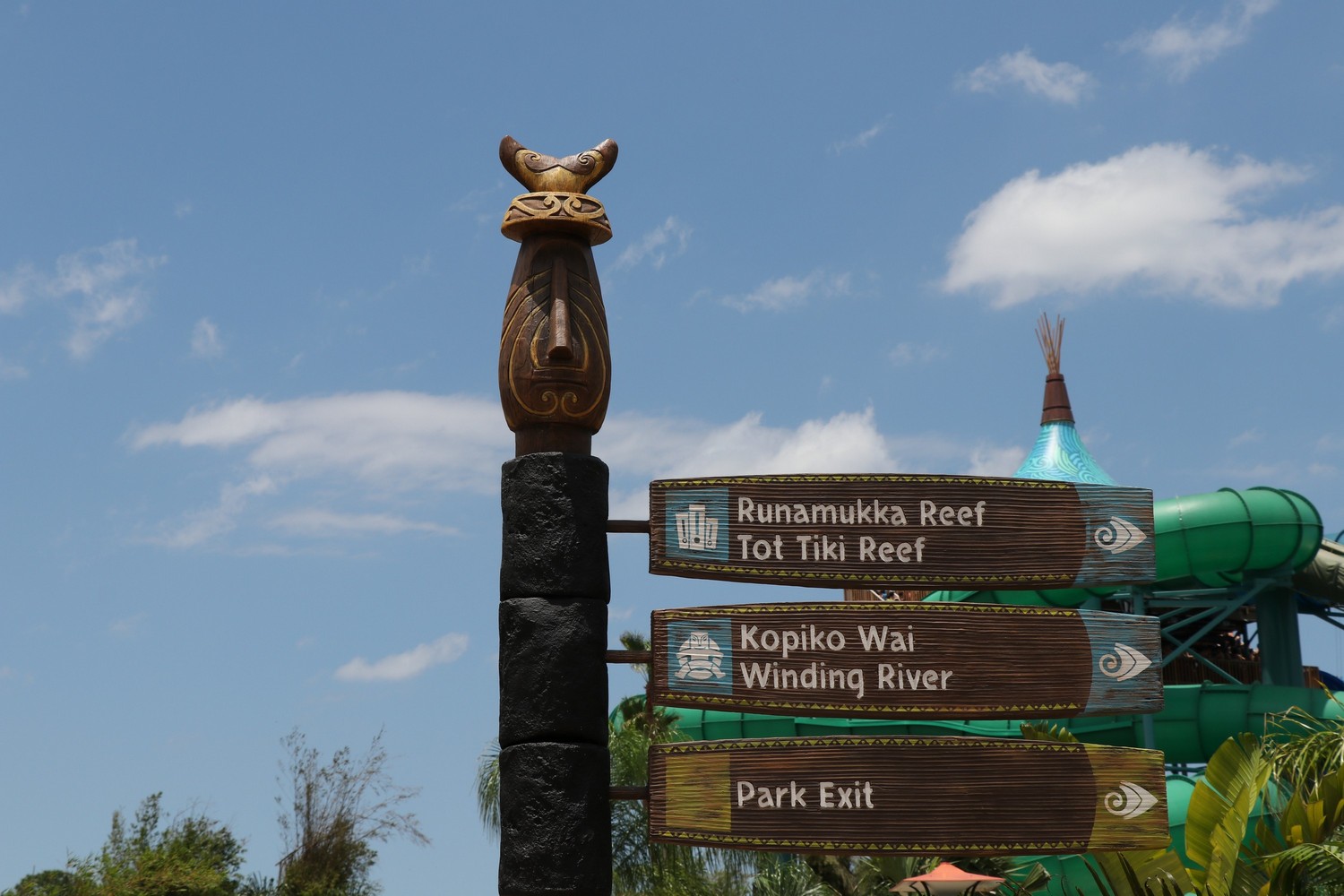 Everything about Volcano Bay is based off of South Pacific/New Zealand lore, with the names, design, and story drawing huge inspiration from their culture. As the story goes, the Waturi are the inhabitants of the island, and have made Volcano Bay their home from the guidance of Kunuku, a mystical fish who was destined to lead them there; so you will see a lot of references to both throughout the park. A word you will hear a lot of during your visit is “Kia