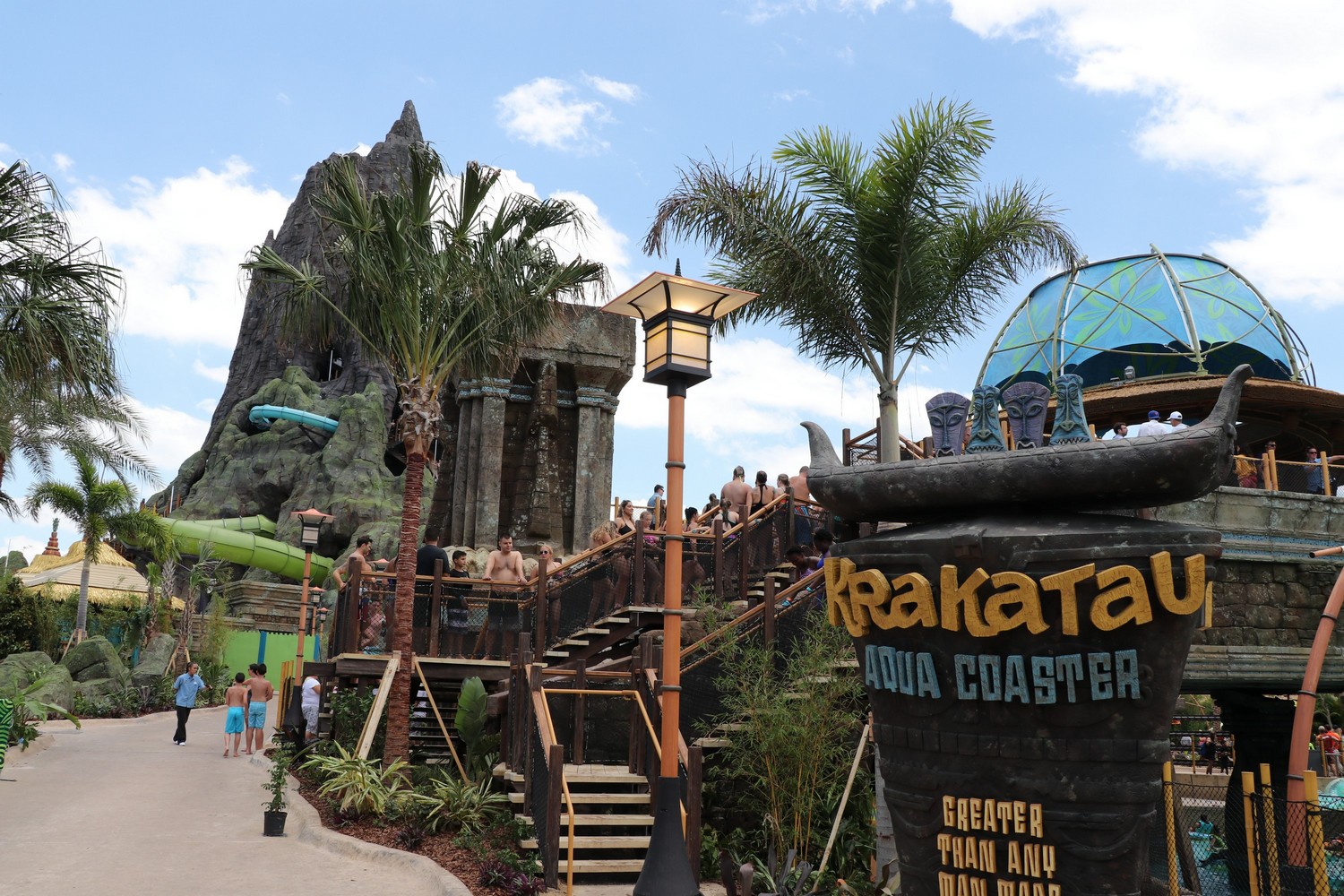 Before going into it, let’s address the 2 elephants in the room. Firstly, Universal raced to the finish line to get Volcano Bay open, where construction crews were working well into the morning of Opening Day to finish what they could. The park, while beautiful, is incomplete; especially as you make your way to the backside areas of the Krakatau – the 200 foot volcano centerpiece. There are still areas left to finish, water features to complete, and finishing touches to add; but since Opening Day, the construction has not impacted guests, or our own, satisfaction. It’s a beautiful park.