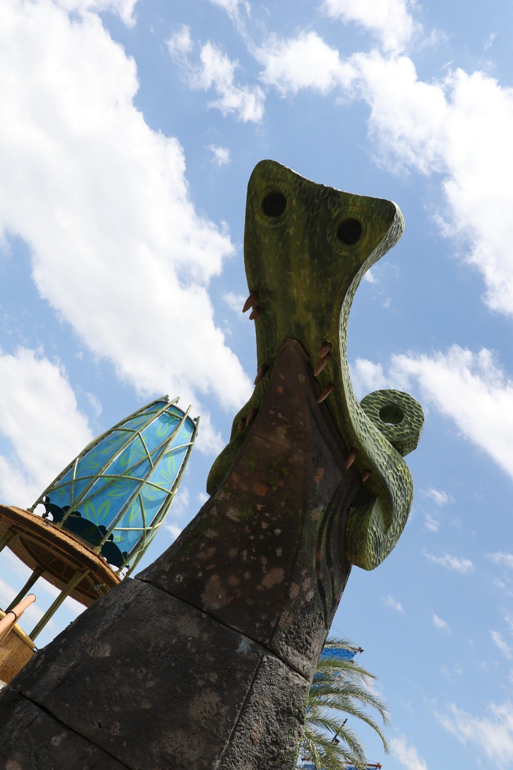 While waiting, the view from the top of Krakatau is stunning; seeing the surrounding park, as well as the rest of the Universal Orlando Resort and surrounding attractions. As you make your way into the drop capsule, tiki drums begin to play faster and faster, elevating your heart rate as you wonder when the door below will open and send you plummeting back to solid ground.