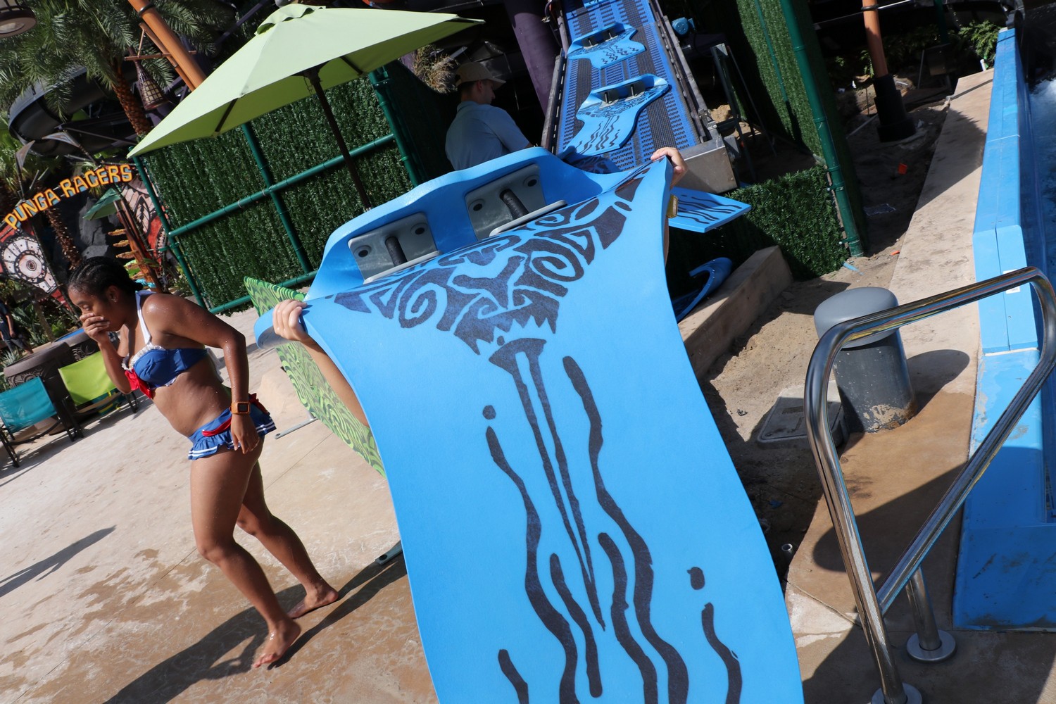 To reserve your spot in a queue, just hold the wearable up to the dedicated station for a couple seconds, and your wait time is reserved. On your wearable, you will see a notification on the screen indicating the name of the ride you selected and how much longer your wait is. If a ride goes down, you will be notified of its closure. Your spot in line will still be held, but you do have the option of waiting it out, or choosing another slide. For example, during the late afternoon, we had reservations for the Puihi raft slide. While eating dinner, we were notified the slide had broken down. As we finished our meal, we got another notification saying it was back open; which we found to be a really fantastic touch of the tech’s potential. If we had some criticism, it would be that the wearable does not give you the time of day; and while not a critical opinion – the wearable is pretty thick so you may end up with a TapuTan if you aren’t mindful of the sun. Once the opening issues are worked out for the wait times, the future of the TapuTapu tech will know no bounds.