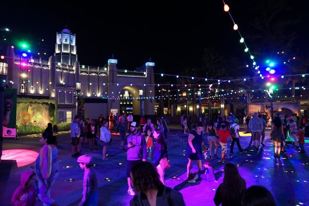 The addition of the DreamWorks characters brings the plaza to life with colorful lights, fun vibes, and smiling faces.