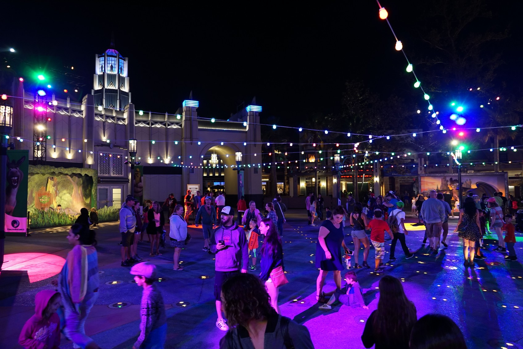 At night, Universal Plaza comes alive as Donkey – from the Shrek franchise – takes over as “DJ”, being heard all throughout the plaza to kick up the music and atmosphere. In addition to the dance music, Universal has added fun, choreographed light shows that incorporate the Plaza’s fountain lights – minus the water.