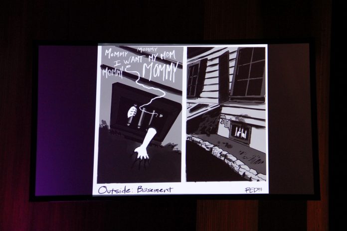 But hints are being dropped around. Giving the special code out at their booth on the showfloor gave you a peek at a bloody book of Mother Goose. Where that could lead is fairly open, whether it’s an all encompassing maze or focused on one specific story. We’re sure to find out in a few short weeks.