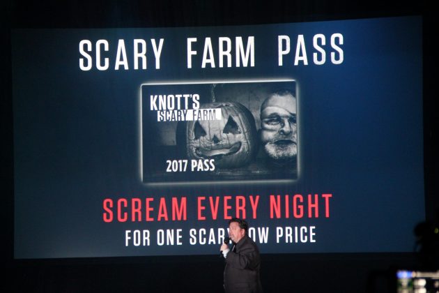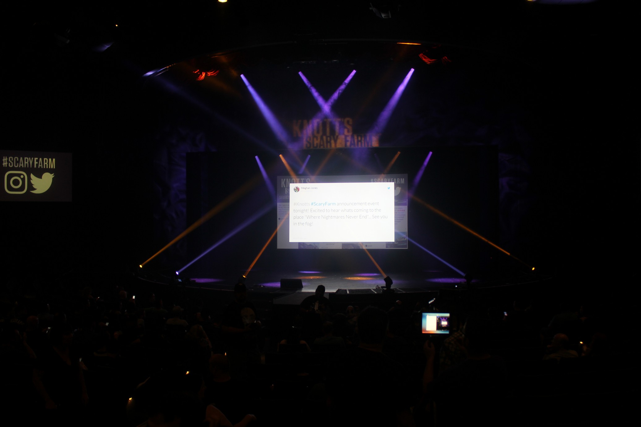 As is now an annual tradition, last night Jeff Tucker took to the stage in the Charles M. Schulz theater at Knott’s Berry Farm, and revealed everything for Knott’s Scary Farm in 2017 to a packed theater and a live-streamed audience. This time, however, it was more of a spectacle than ever before with a great assortment of performances, behind the scenes videos, custom facades to introduce the new mazes, and an amazing lighting system.