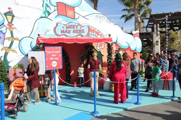 If you’re looking for something fun to do as a family and help those less fortunate, be sure to stop by the Whoville Post Office and fill out a postcard writing three good deeds you did in 2017. For every post card you fill out, Universal Studios Hollywood’s Discover a Star Foundation will make a donation to School on Wheels. After you fill out the post card, drop it in the mail box and let one of the team members know. They’ll hand you a map where you’ll need to walk around Whoville and find hidden objects. Once you’ve found the six objects, return to the Post Office and you’ll be handed a special Grinchmas 2017 bracelet.