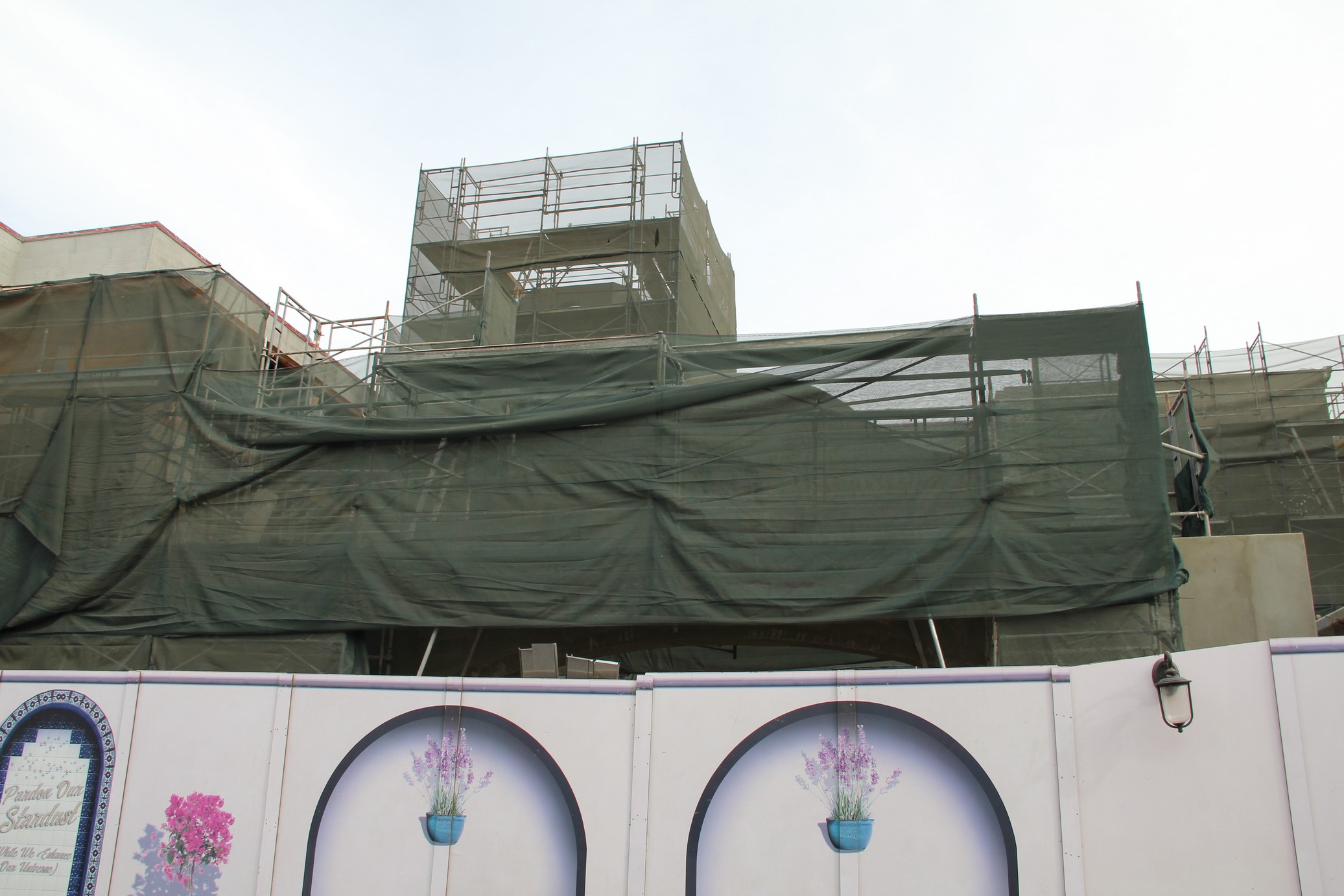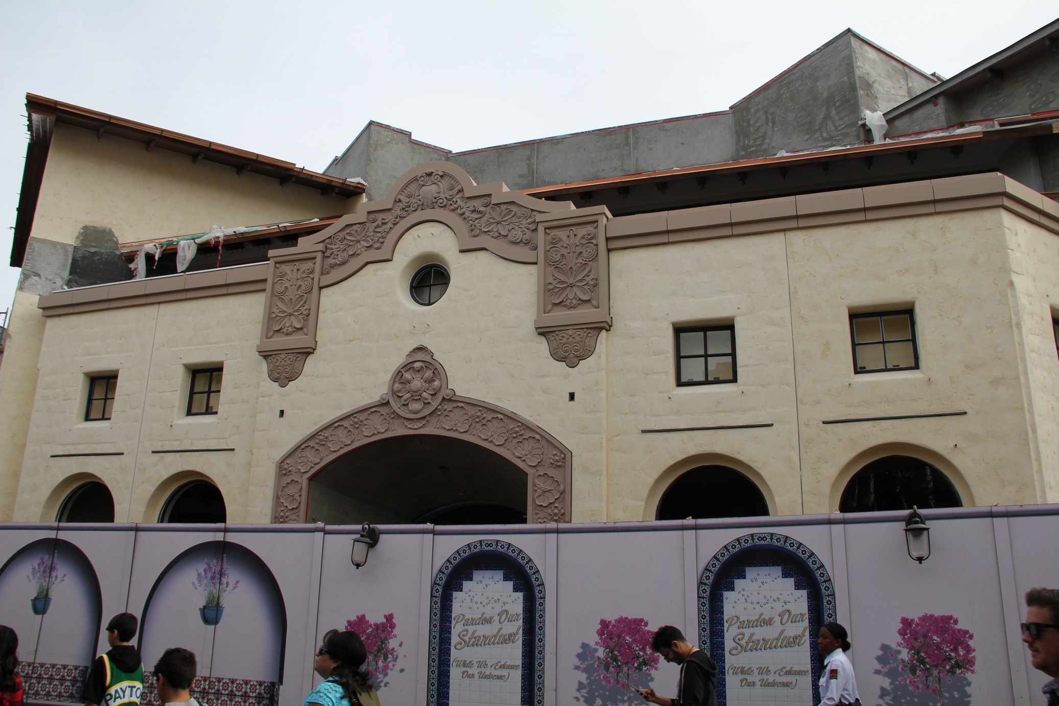 The Animation Studio Store recently had some of its scrim removed, which gave us a first look at what the exterior of the building will look like. The new building will house a multitude of things such as a Hello Kitty experience, security offices and the parks first family center.