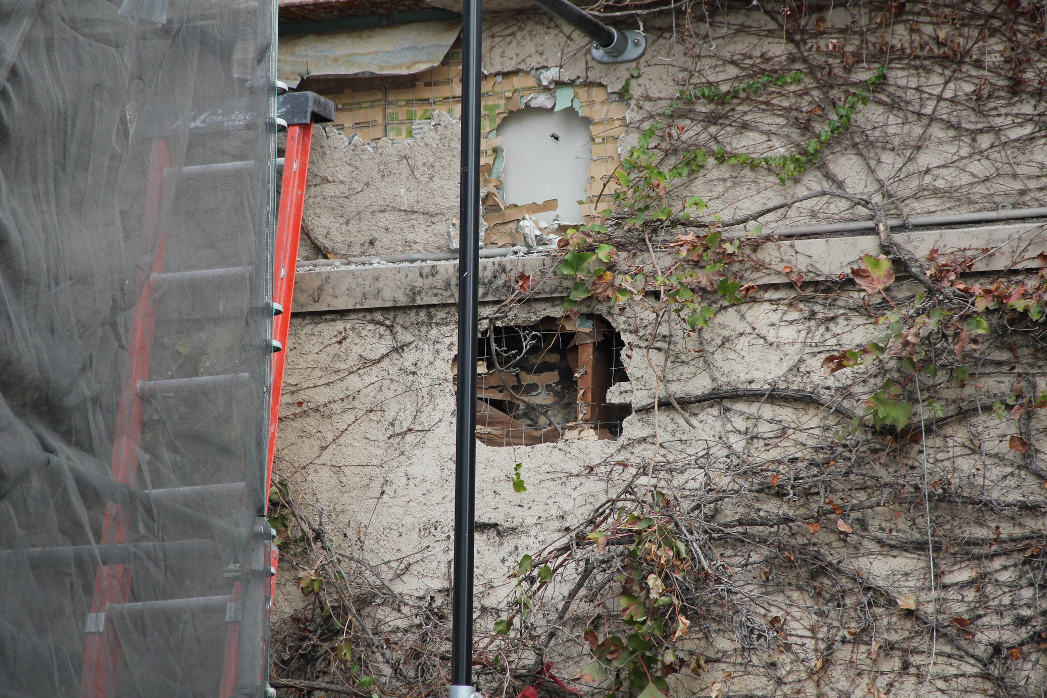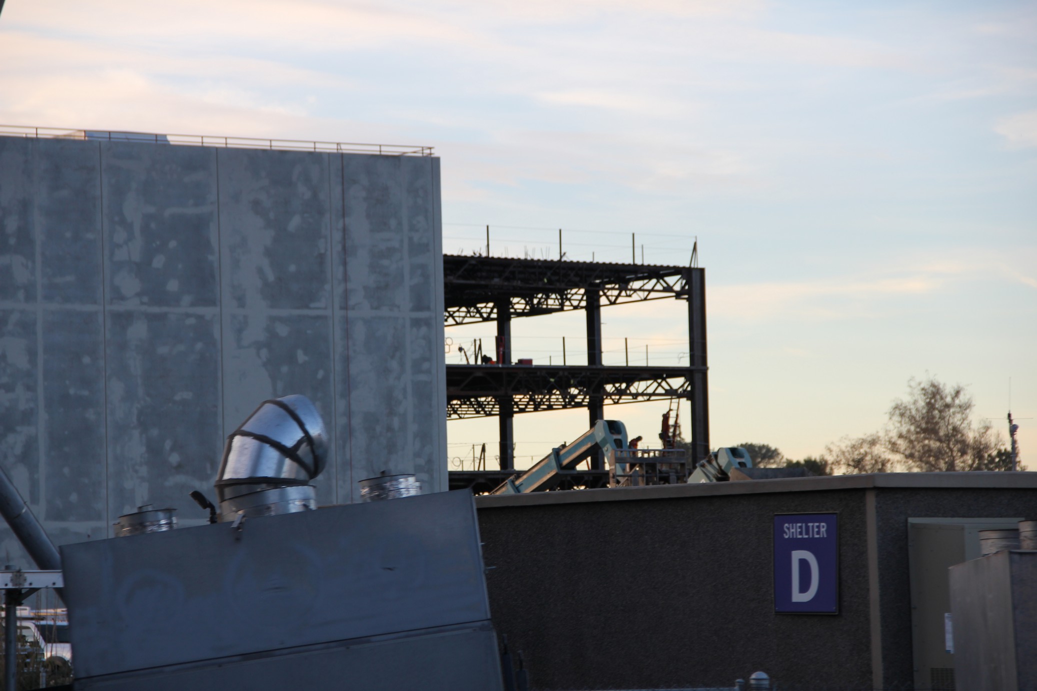 The first sign of steel has gone up in the outdoor section of the queue. The steel looks like an archway that was represented in the concept art. Looking closer at the show building itself, you can see where they’ve made holes in the outer walls.