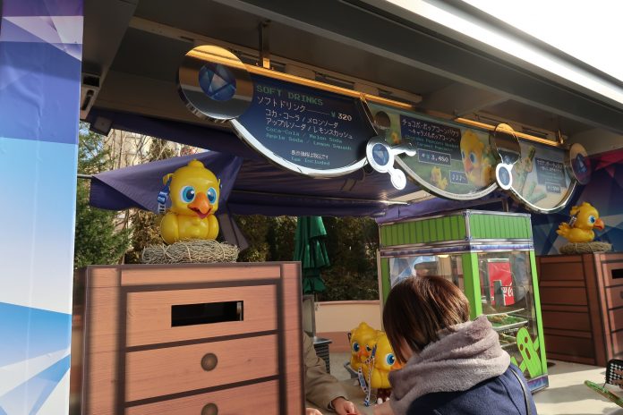 Mmerchandise can be found in front of the attraction. For what it’s worth, you can only purchase Universal/Final Fantasy merchandise at the park. You can also purchase a Chocobo Popcorn bucket at the popcorn cart for 3480 yen each. Only a limited number is sold each day.