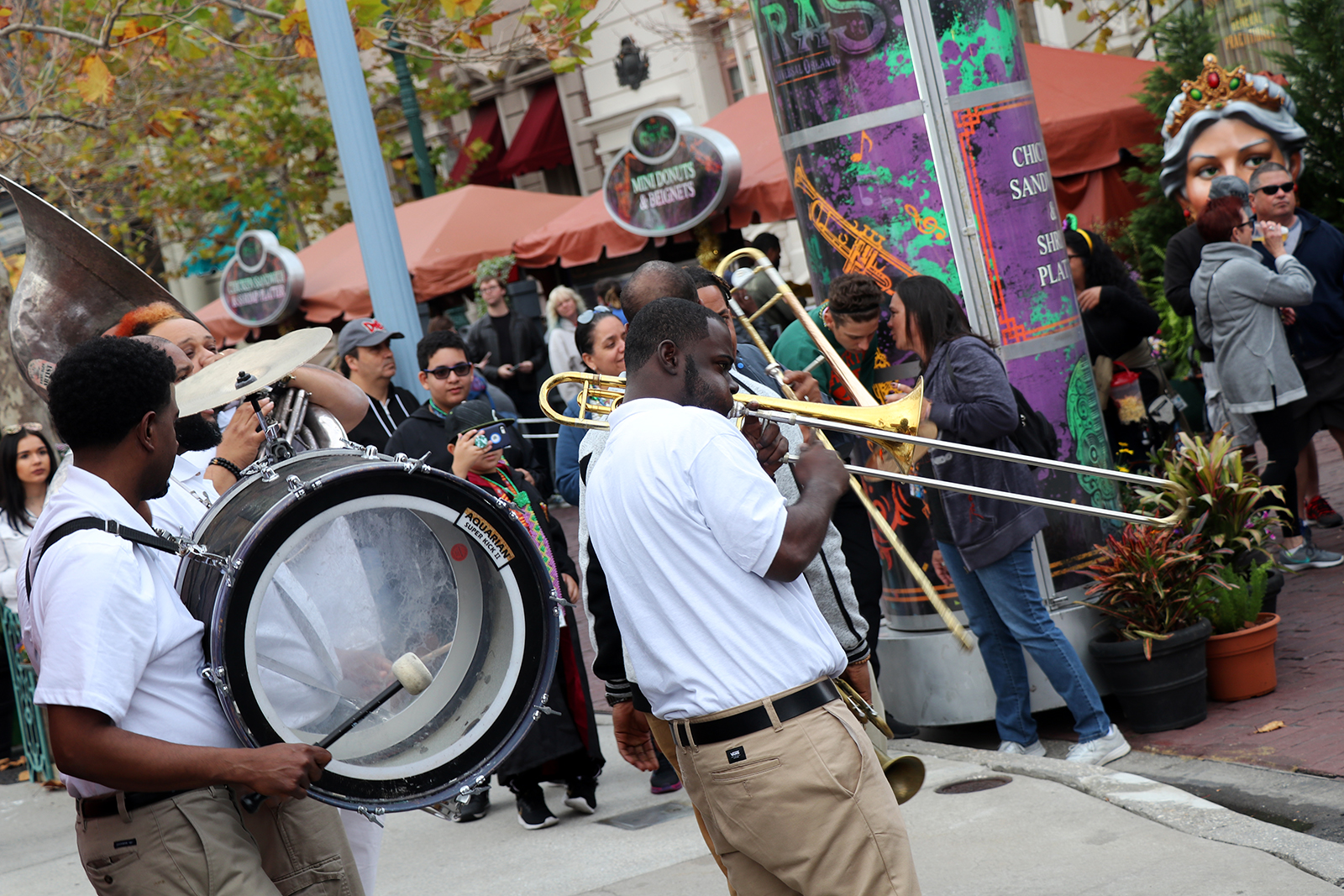 Hands down, the most entertaining thing to do at Mardi Gras – and maybe even Universal Orlando period – is riding a float and taking part in throwing beads to guests. You do have to dedicate some time to wait to ensure a spot, especially during busy nights, but the wait is very well worth it. Seeing guests, especially kids, take joy and ask for beads adds another level of fun to the event.