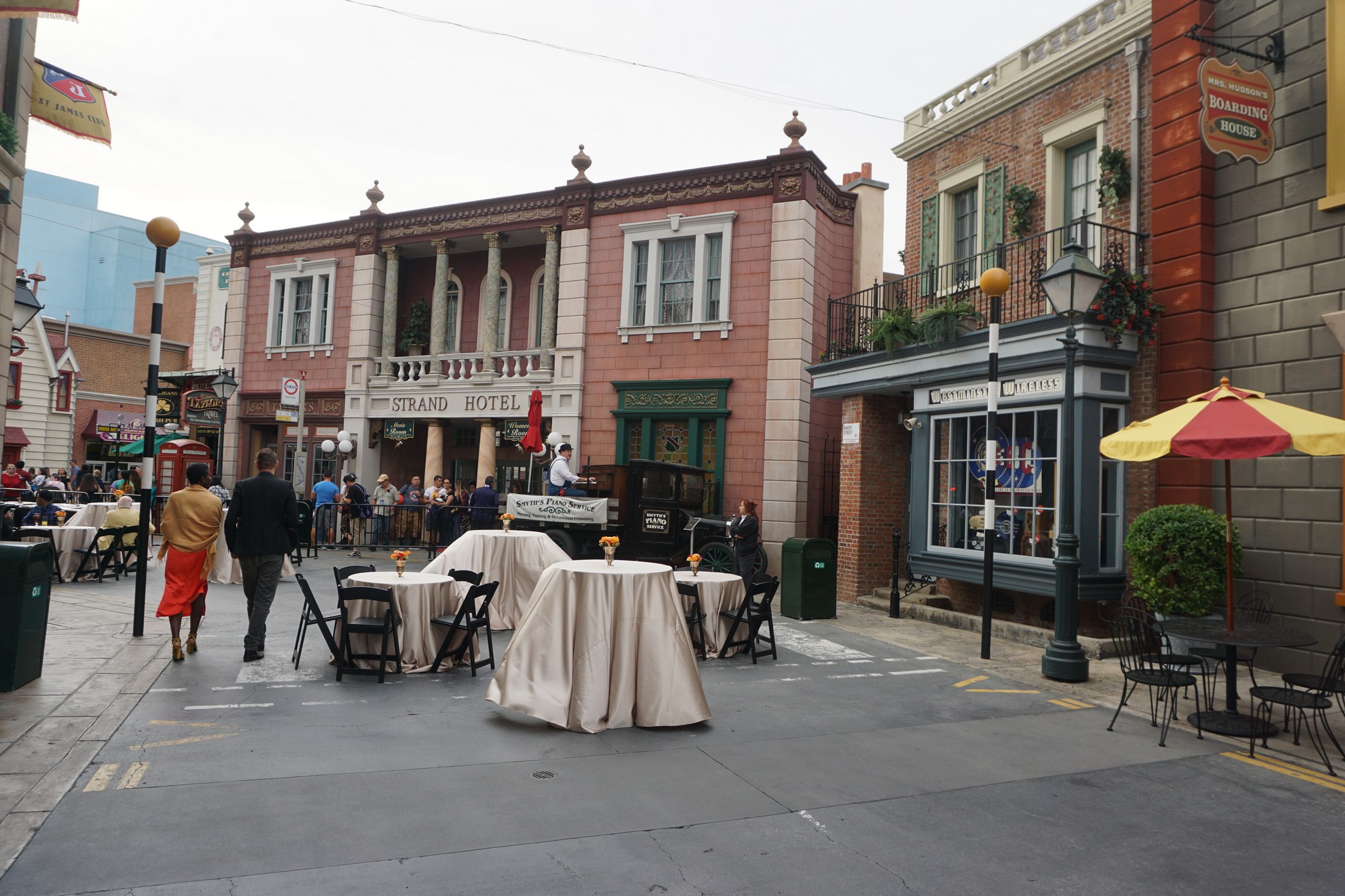 Sebastian was out on the piano today, even while they were settings up for an event near the Globe Theater.