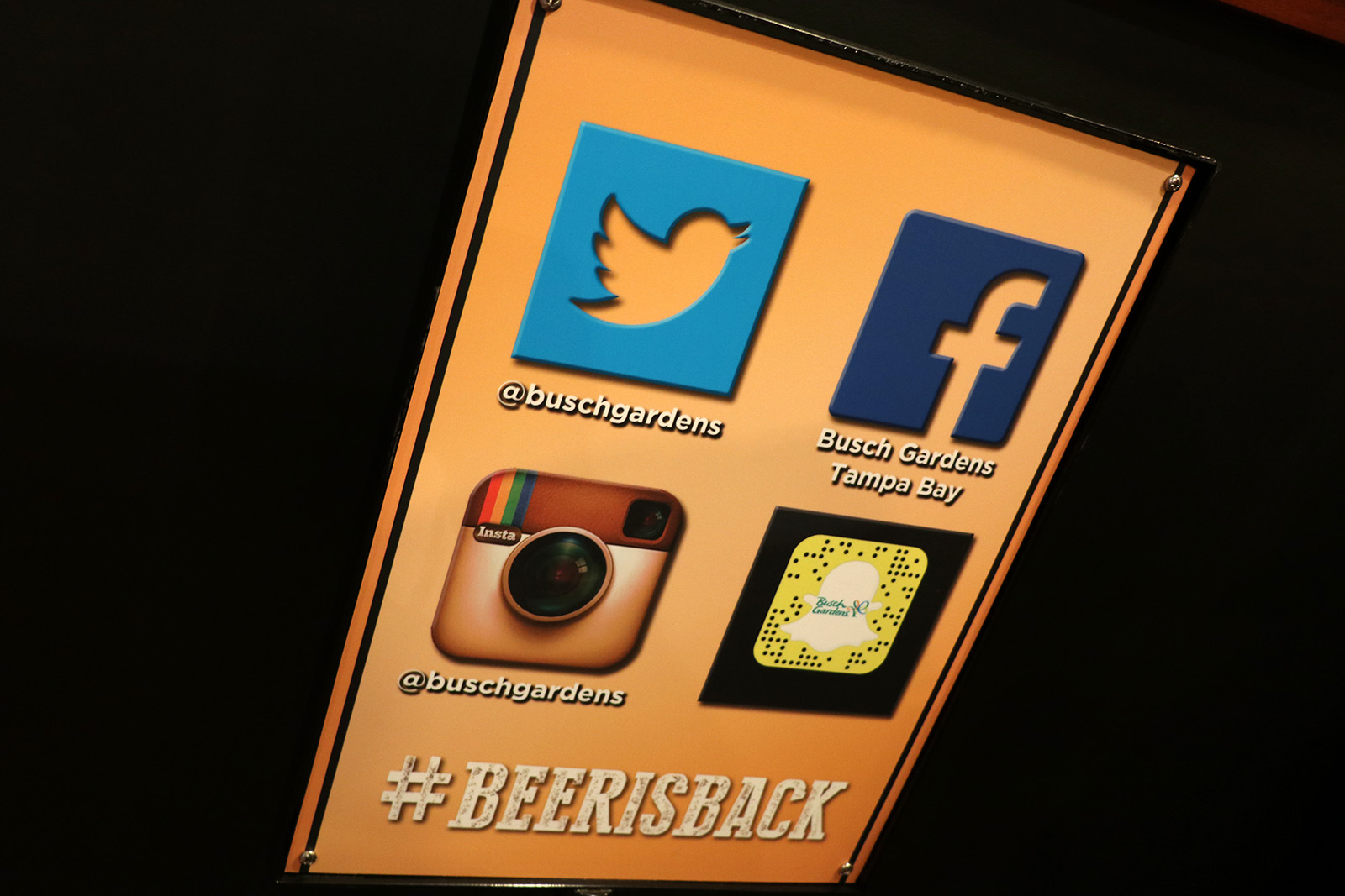 Busch Gardens Tampa – along with SeaWorld Orlando – eliminated free beer samples after Anheuser-Busch was bought out by InBev in 2009. Eventually, all ties to Anheuser-Busch were finally removed when InBev sold the parks to Blackstone later that year.