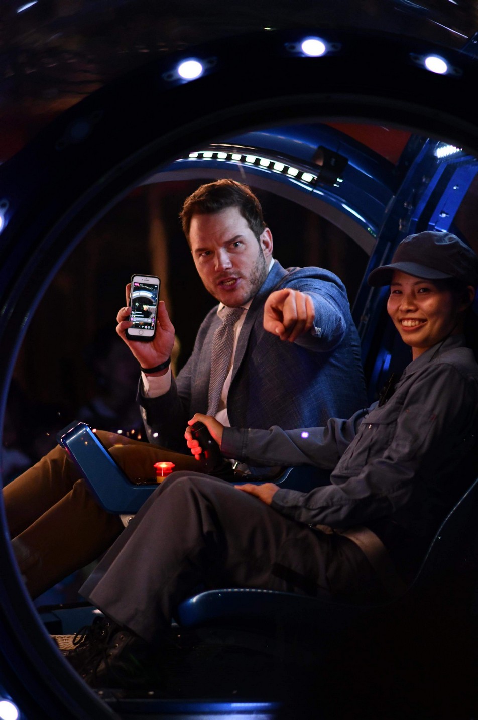 The cast also took part in the new Universal Spectacle Night Parade, appearing on the Jurassic World floats.