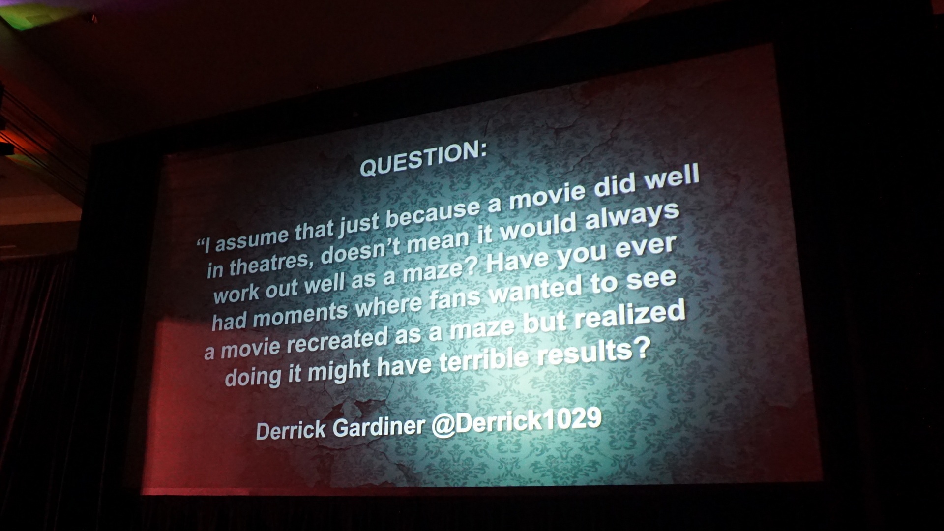If you’ve attended previous panels Murdy has done, many of the details will be familiar, regarding how he started and how treatments are created for mazes, but getting an insight into the looser style for Orlando was a nice contrast, especially since so few people have visited both coasts during HHN.