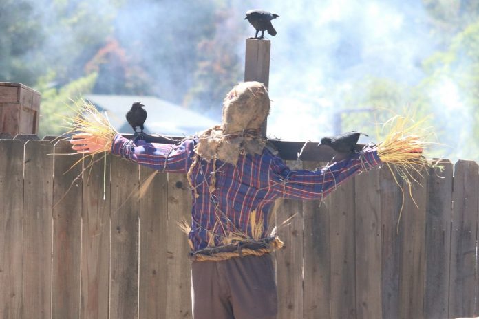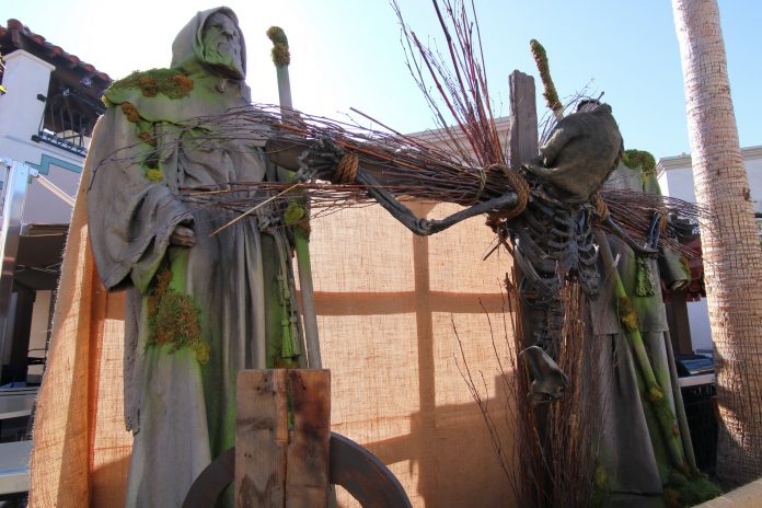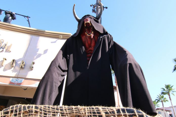 Much has changed since our most recent update – the park is now decked with Halloween Horror Nights props and scenery from the very entrance, beginning with the Hell’s Harvest scare zone which depicts a pagan harvest festival. However, many of the more intense props remain cloaked under burlap sacks in an attempt to maintain a more family-friendly atmosphere in the park.