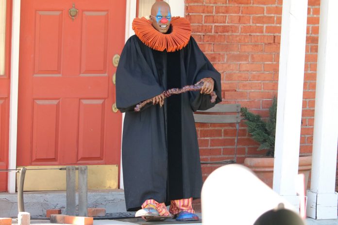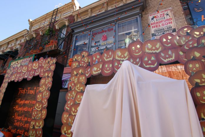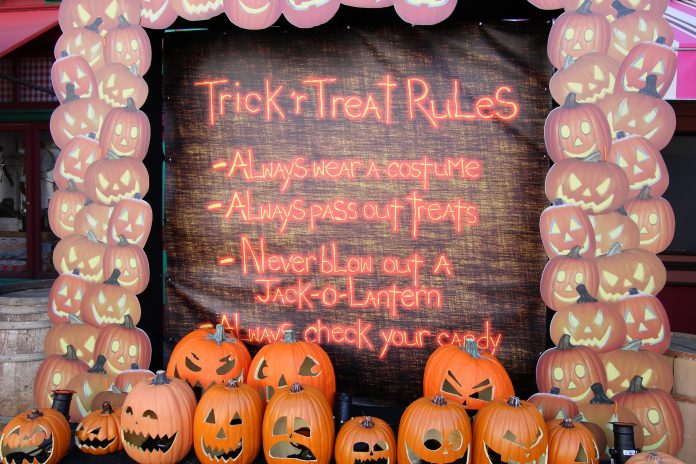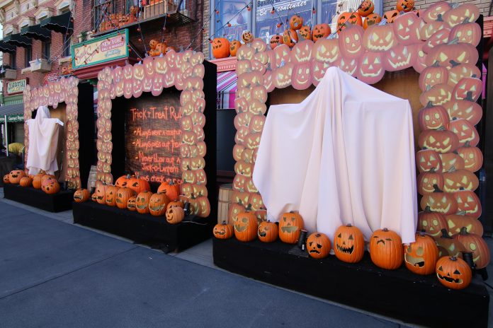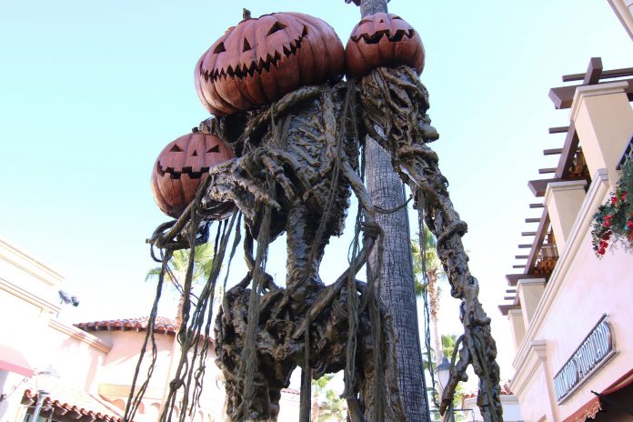 As Universal Boulevard ends and New York Street begins, props shift from the “Hell’s Harvest” theme to the that of the movie Trick r’ Treat. Many of the iconic aspects of the film, including the school bus, ghost scarecrows, and the rules of Halloween themselves make an appearance among the many jack-o-lanterns decking the street. In addition, the famed flame towers have returned, promising a more lively atmosphere in the Trick r’ Treat scare zone than in the previous Hell-o-ween scare zone featured in the same location at last year’s event.