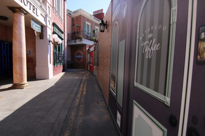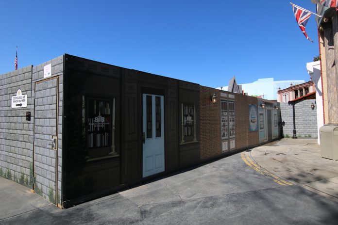 The construction walls surrounding the previously-demolished half of Baker Street have been extended farther out into the walkway, completely blocking all traffic both ways on the street. This is a surprise move, given the close proximity of the opening night of Halloween Horror Nights, where The Walking Dead Attraction generally uses Baker Street as its extended queue, though as of this update, we are not sure how long the wall extension will last.