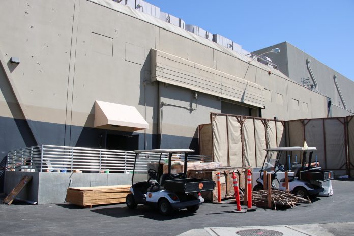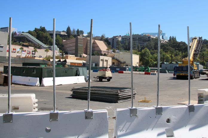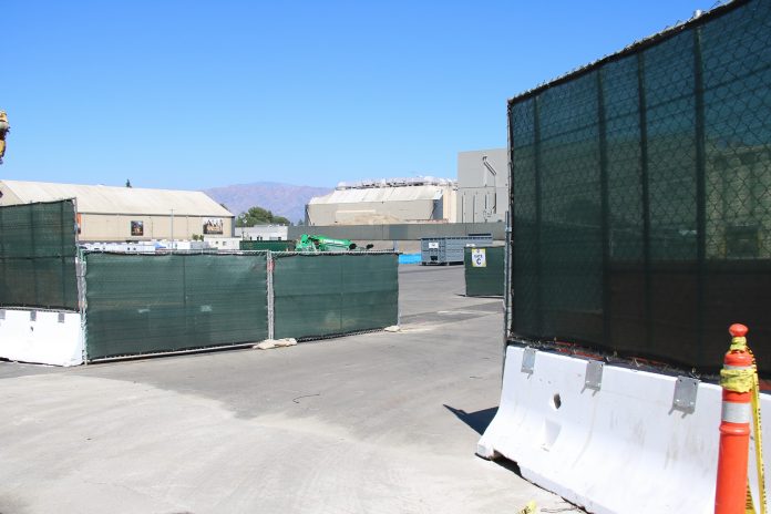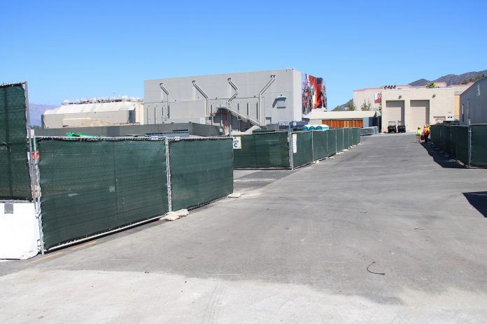 Along with the final touches to the interior of the Stranger Things maze, queue preparation and setup is beginning with the appearance of sound walls just in front of the entrance to the soundstage, as well as the removal of the construction walls previously to the left of Transformers: The Ride 3D.