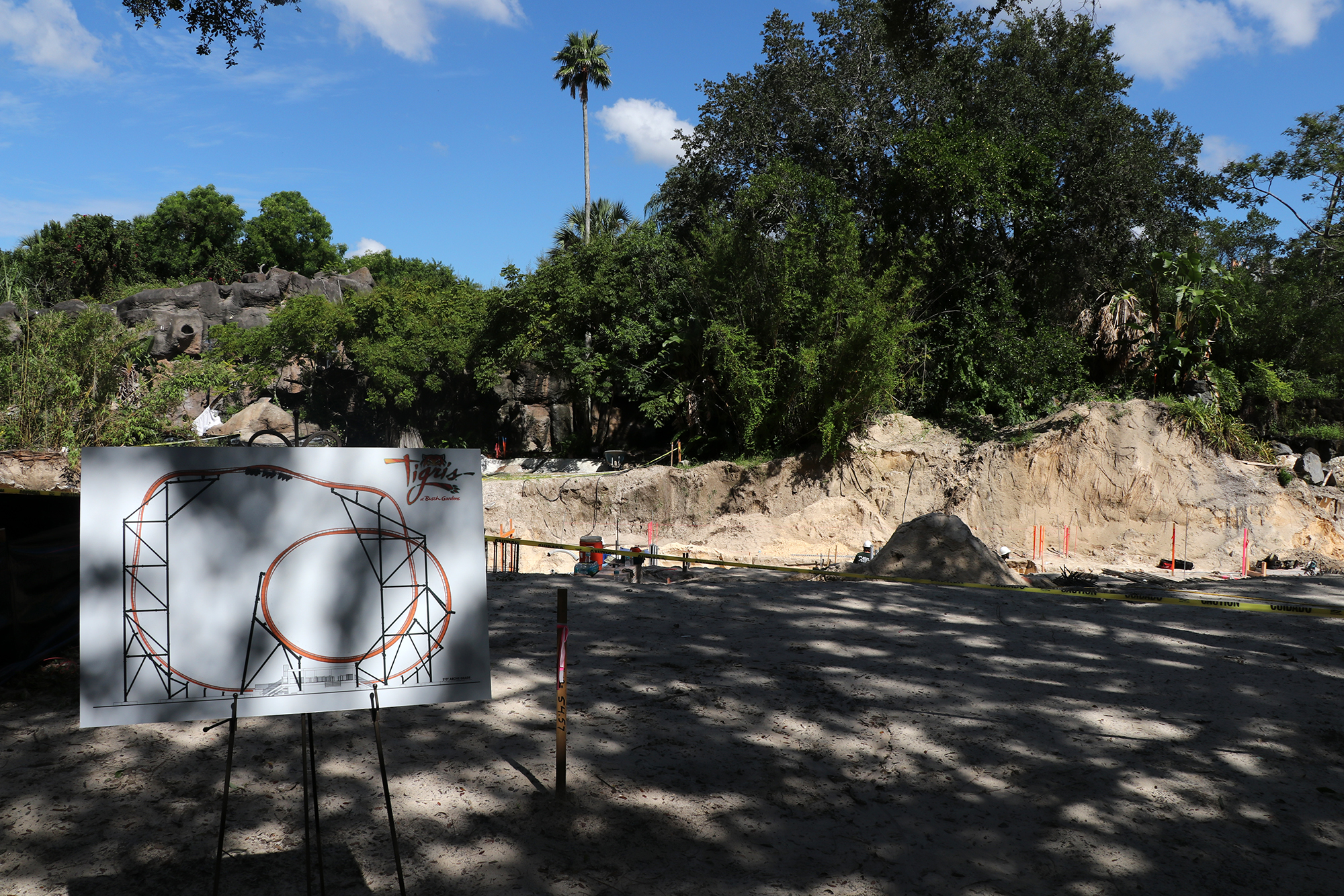 Tigris is well under construction in the Stanleyville area of the theme park in the former home of Tidal Wave – right next to Jungala, which houses the park’s endangered Bengal tigers.
