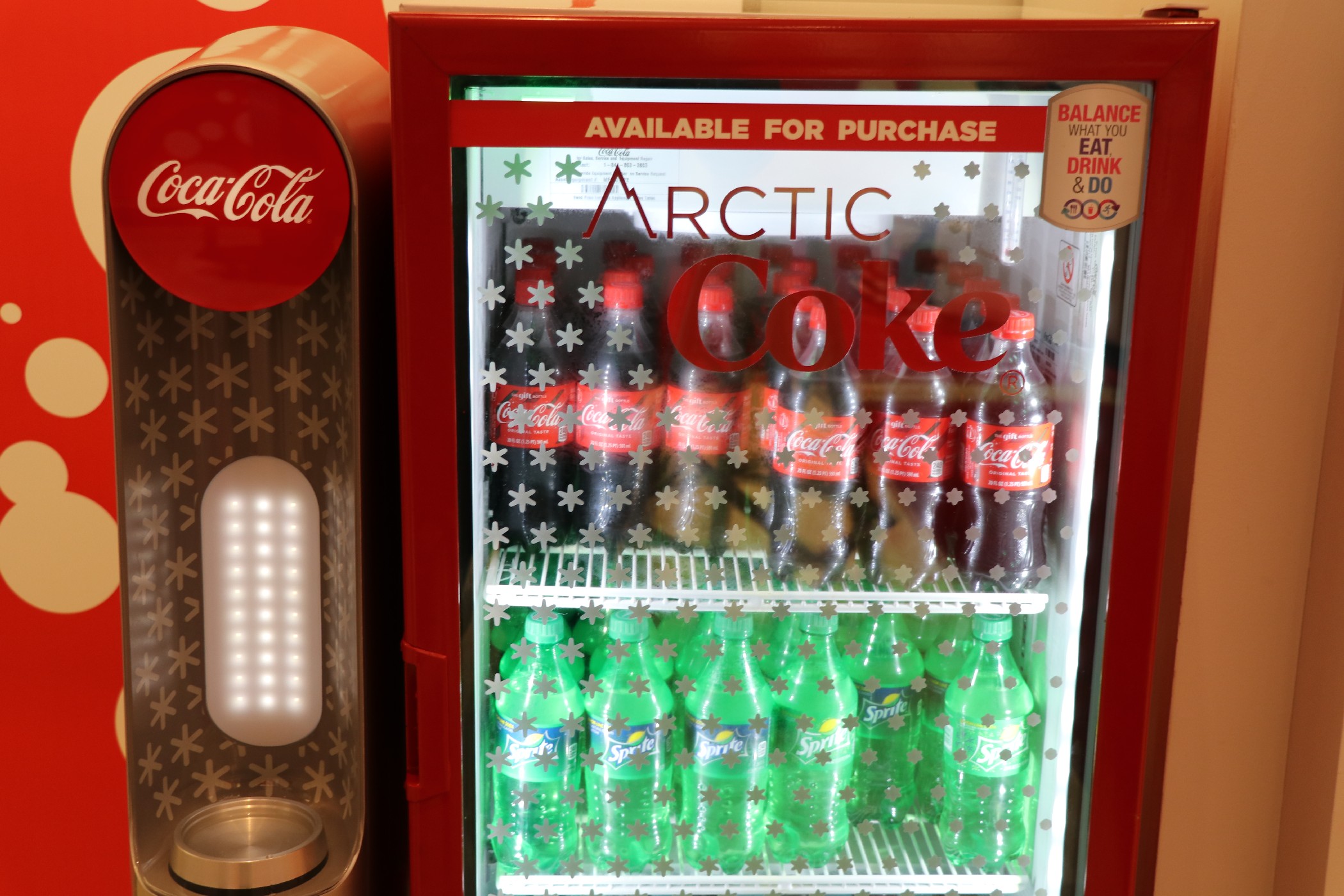The new Passholder lounge is open for a limited time during the Holidays. The lounge offers a spot to sit and relax, with complimentary phone chargers and snacks. Amongst the columns, there are chalkboards where guests can write messages and tips. A cool (no pun intended) feature is the new Arctic Coke machine, which turns 20oz drinks into slushies. Unfortunately, drinks are not complimentary.