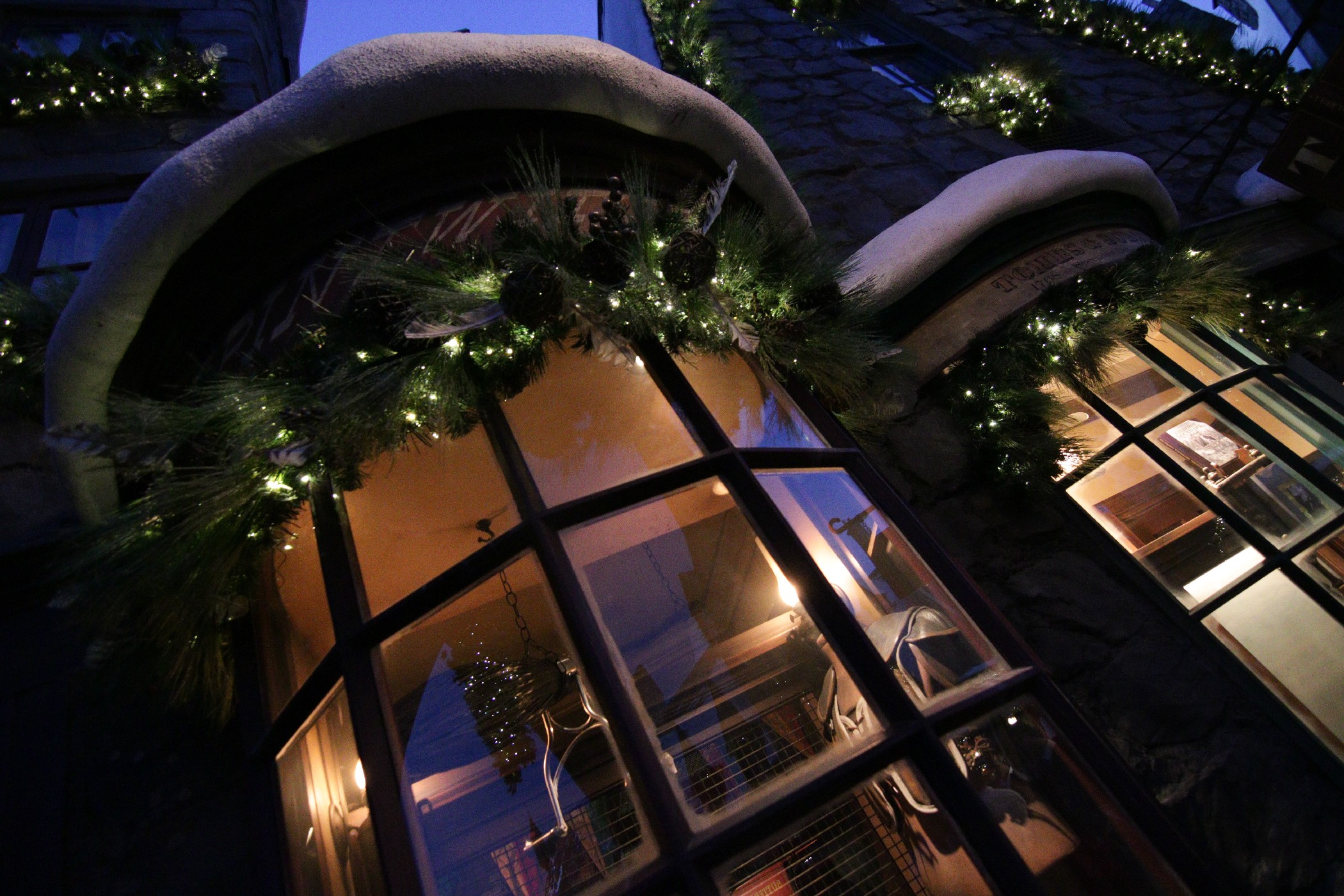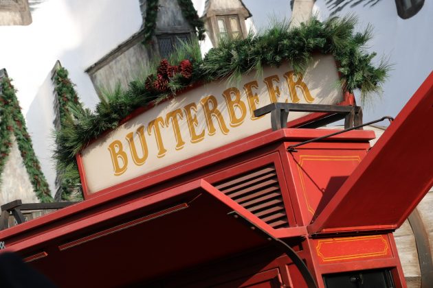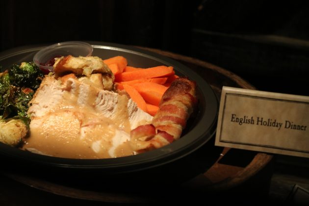 For when lunch and dinnertime approach, the Three Broomsticks offers some special holiday options this season. Although the Holiday Feast – the seasonal equivalent of the Great Feast offered throughout the rest of the year – no longer appears to be on the menu, guests can still indulge in the English Holiday Dinner including turkey with gravy, stuffing, carrots, brussels sprouts, and even a bacon-wrapped sausage. In addition, guests can pair their meals with a hot Butterbeer sure to warm them up as the temperature continues to drop.