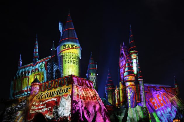 To conclude a day at the park, The Magic of Christmas at Hogwarts Castle nighttime spectacular lights up Hogsmeade with bright and colorful imagery that further transports guests into the Christmas season of the Wizarding World with bright, stunning animations dancing across Hogwarts castle to the enchanting music of the films.
