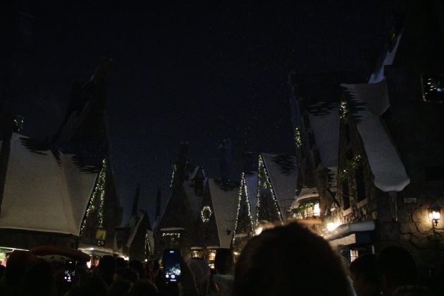 New to this year’s holiday festivities is a nightly snowfall throughout Hogsmeade village that occurs at the conclusion of each light projection show, resonating for as long as the music continues to play on. We suggest finding a spot for a viewing of the snowfall in advance, as getting caught in the massive crowds attempting to leave Hogsmeade after the ending of the nighttime spectacular can make it difficult to fully take in.