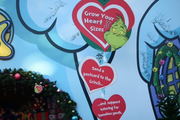 Guests can grow their hearts three sizes at the Who-ville Post Office, where they can create a postcard promising three good deeds addressed to the Grinch. In return, Universal will make a charitable donation to School on Wheels – an organization dedicated to educating the homeless youth – for every postcard sent.