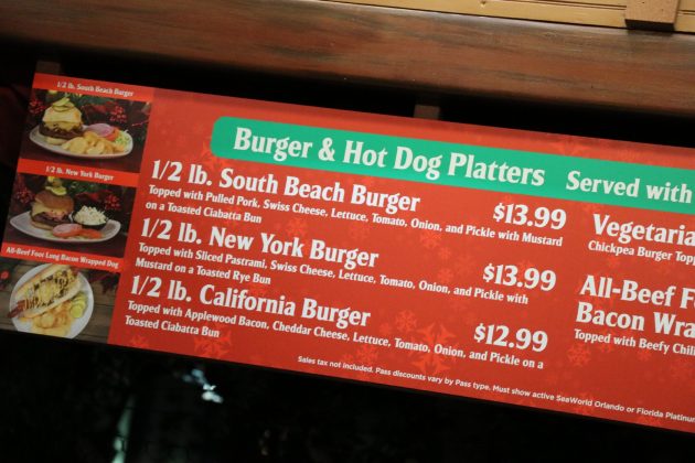 SeaWorld has seen major success with food & wine events this year, so it’s no surprise the Holidays have received some more goodies to the menu. The Christmas Market is filled with fresh-popped kettle corn, waffle cone S’mores, grilled slider sandwiches, short-rib brisket mac & cheese and SeaWorld’s very own apple pie with a unique and delicious twist. One of the most unique items this year, and one that’s gonna set your diet back a few weeks, is the pulled pork donut sandwich; which is topped with fried pickles, onion hay strings and bacon. While the idea may sound off-putting, the sweetness of the donut & salty savoriness of the meats makes it quite a delicious combination.
