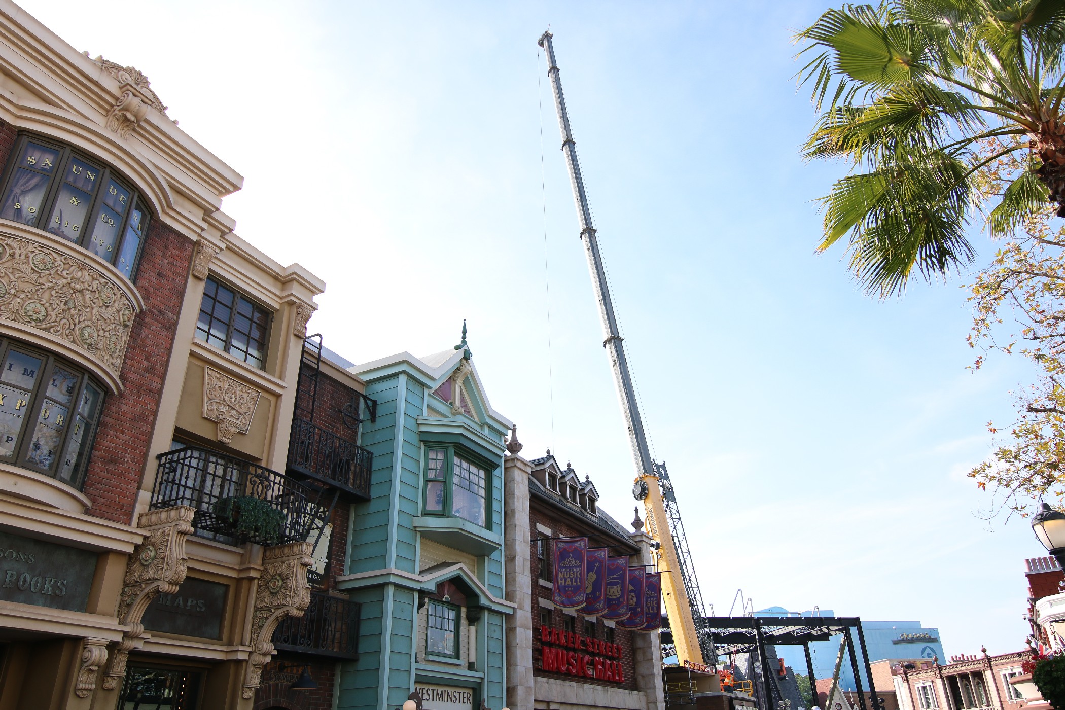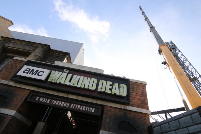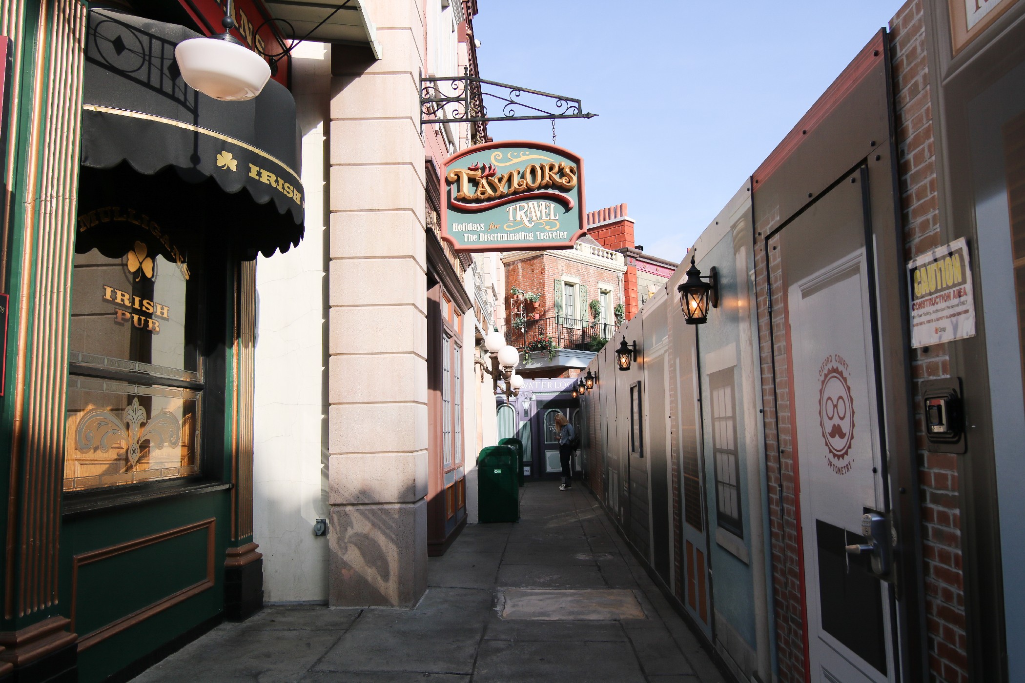Just as the theme park holiday season has come to a close, construction walls completely blocking off the end of Baker Street located near the entrance to The Walking Dead Attraction have returned. Restroom access is still available from the other side of the street just across from Despicable Me: Minion Mayhem, though walls now hug the side of the Parisian Courtyard facing Baker Street, preventing guests from taking that particular shortcut to the restrooms.