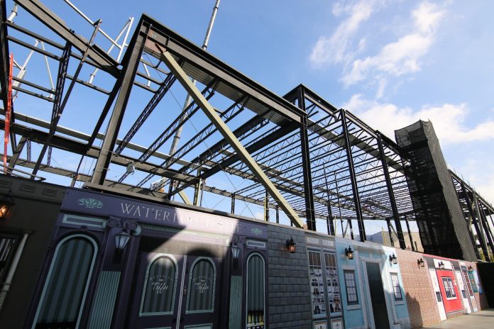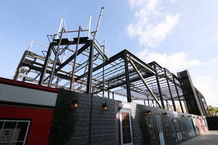 Construction on the ride itself has significantly progressed as the new show building beginning just after the initial lift hill continues to develop.