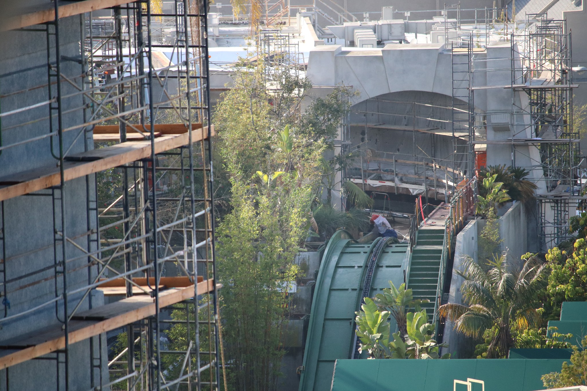 Just after Grinchmas and eVe have disappeared for the season, Universal Plaza now remains closed-off as setup for the upcoming Lunar New Year celebration occurs just behind the green walls.