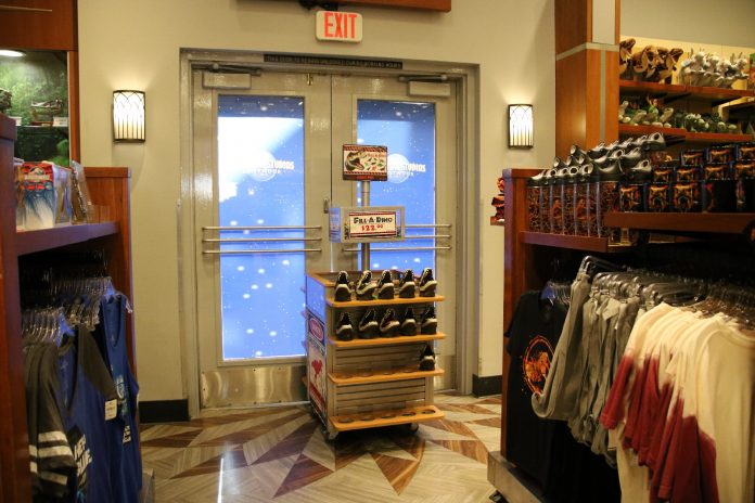 Though it still remains open, the Lower Lot Studio Store now serves as a makeshift Jurassic Outfitters, for some of the displays and much of the merchandise from the temporarily-closed Jurassic Park gift shop have evidently been transferred over for guests to continue purchasing if they so wish to do so.