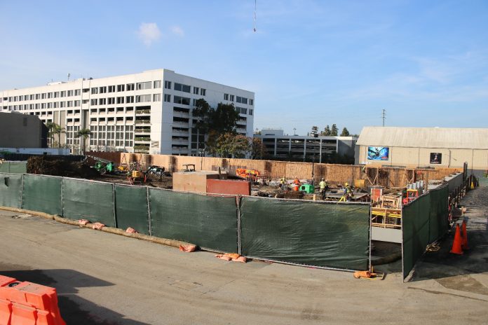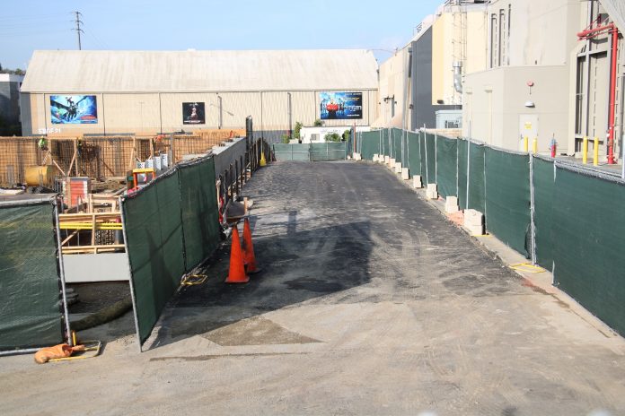 The ramp leading from the left side of the Transformers show building to Soundstage 29 appears to be more evened out with the rest of the surface of the P168 plot as construction progresses just to its left. Though not much else appears to have changed on the plot, construction crews still appear to be working nonstop on the unannounced project being built there.