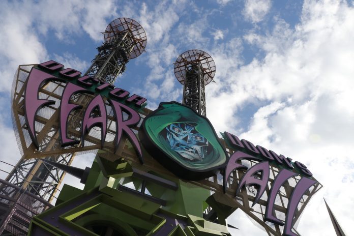 Dr. Doom’s Fear Fall recently completed the transition to new restraints, which now do not include a seat belt.