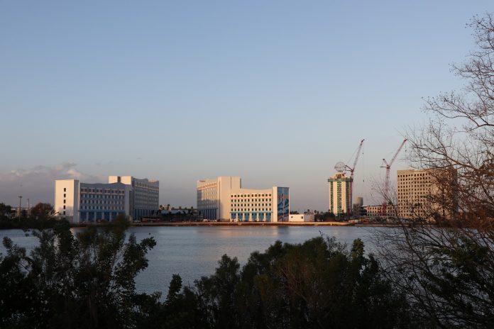 Over on Dockside, the first building’s framework is almost completed – while the footers of the other buildings are beginning to rise. Reservations for both sides of the Resort are now being accepted.