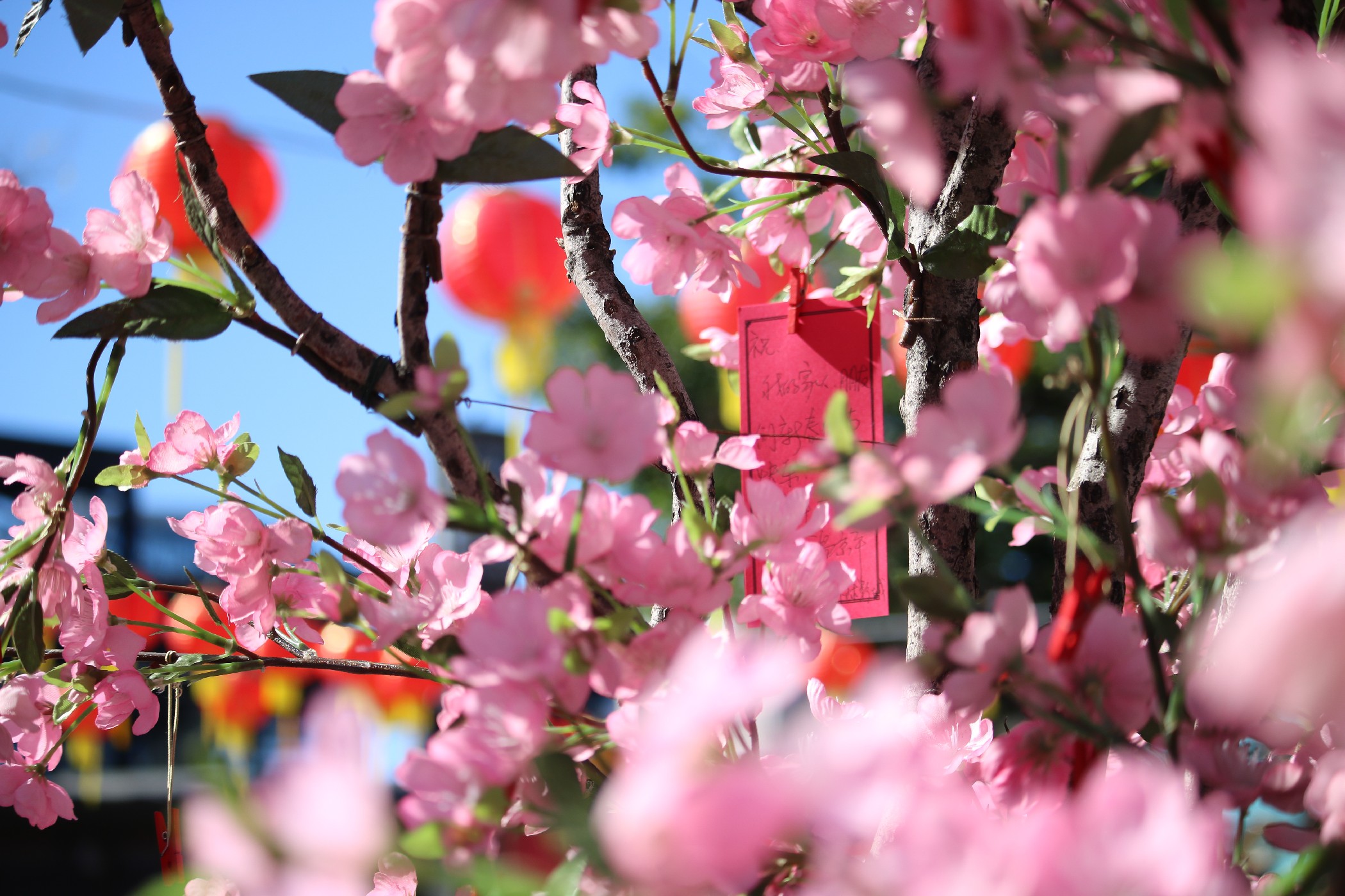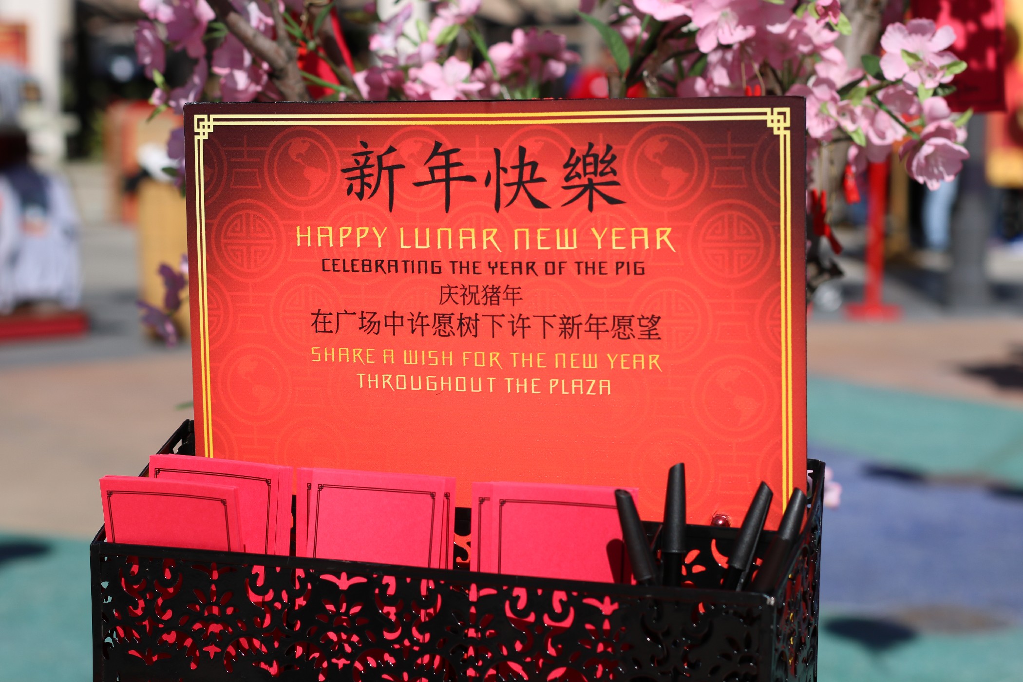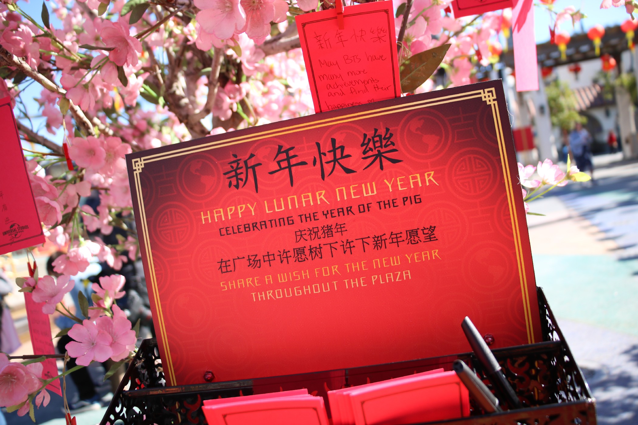 The decor around the park is pleasant and charming, as customary red Chinese lanterns and plum blossom Wishing Trees are found around the Plaza. This year, the park decorated the New York Street facades, as Minions – dressed in Lunar New Year attire – met with guests around the area.