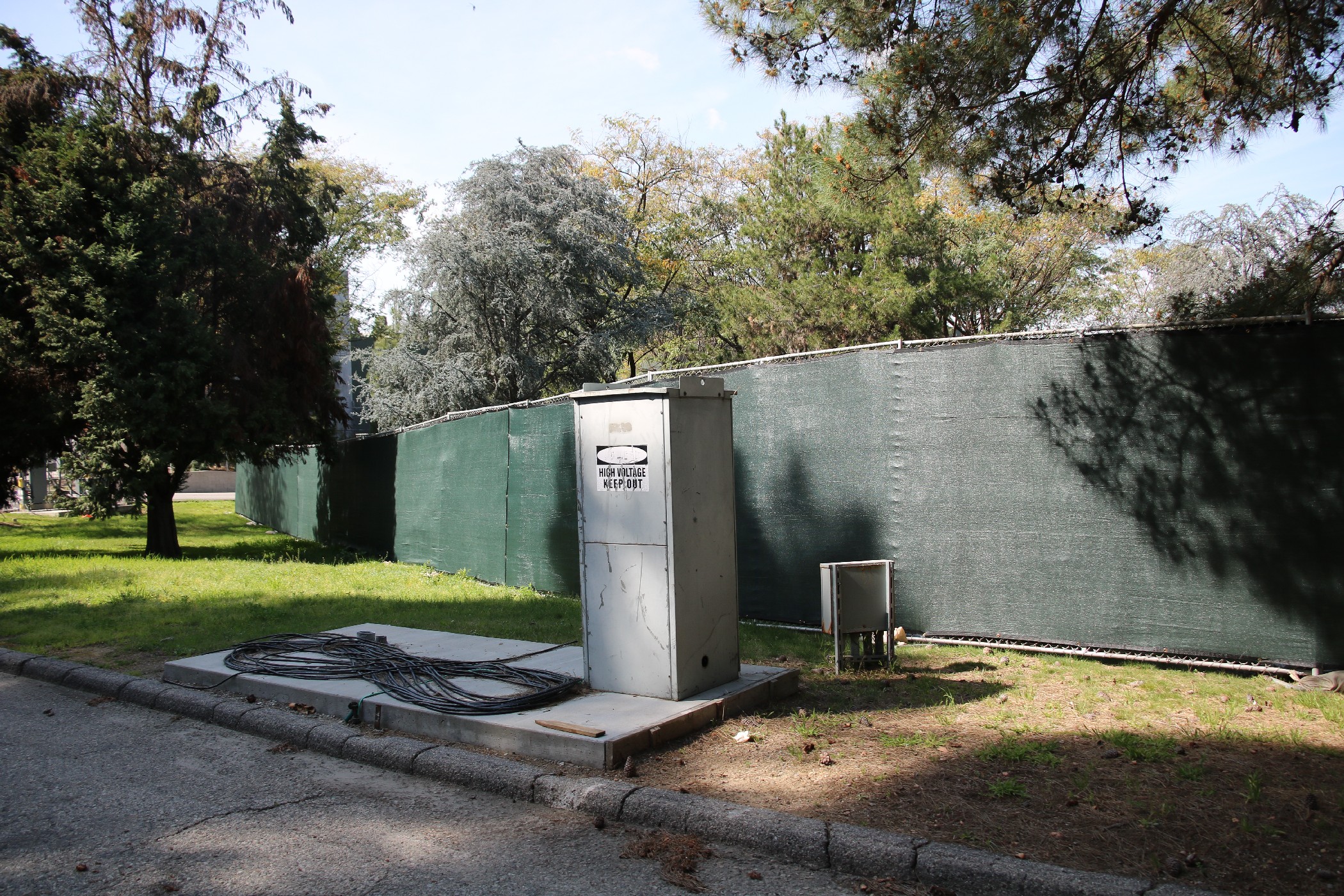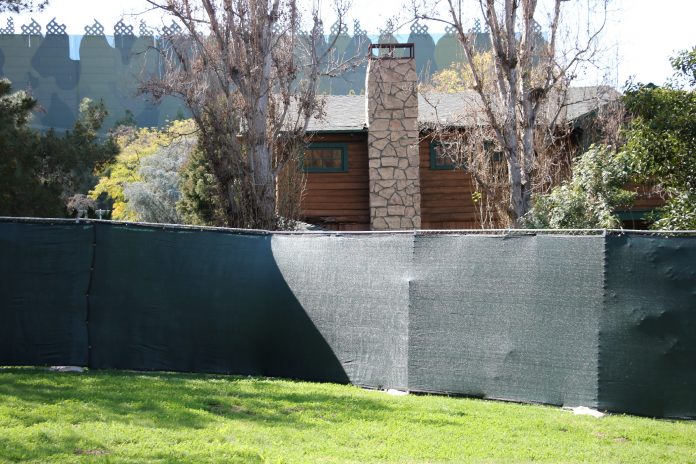 Though it could be related to a production filming on the location, walls have gone up around the entire plot of land beginning at the log cabin stretching all the way to the blue screen at Falls Lake.