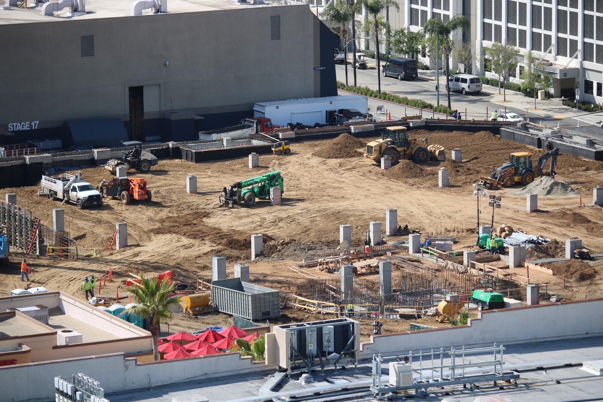 The unannounced Project 168 plot continues to develop as a foundation of dirt levels out the previously uneven land. In addition, work on a new extended queue for Transformers: The Ride 3D progresses just to the left of the attraction’s show building.