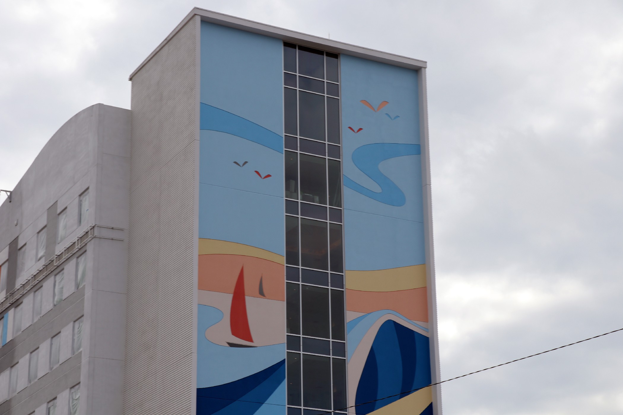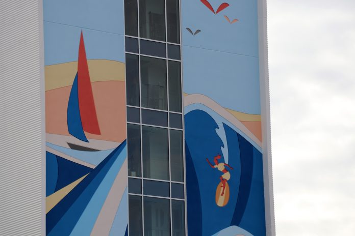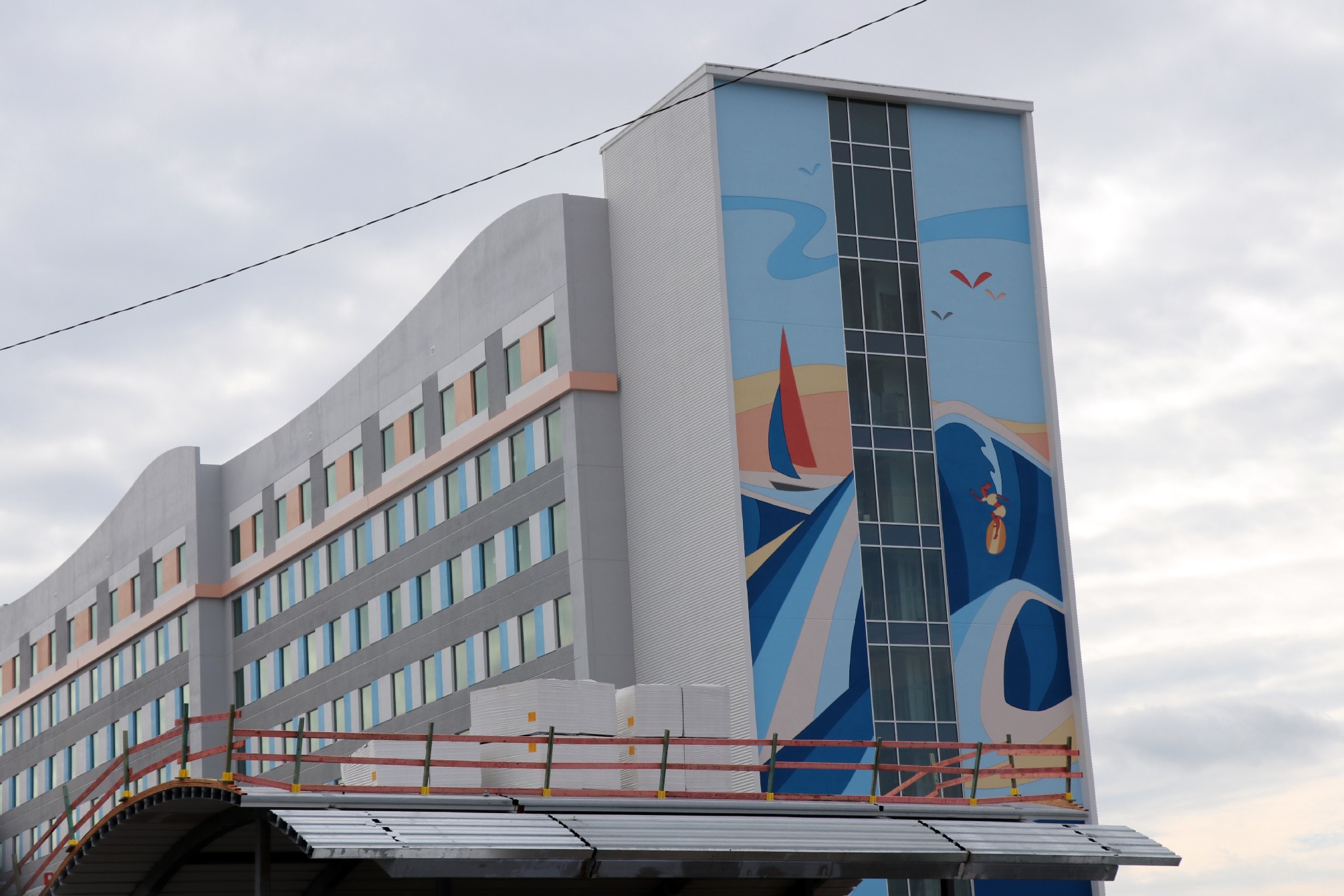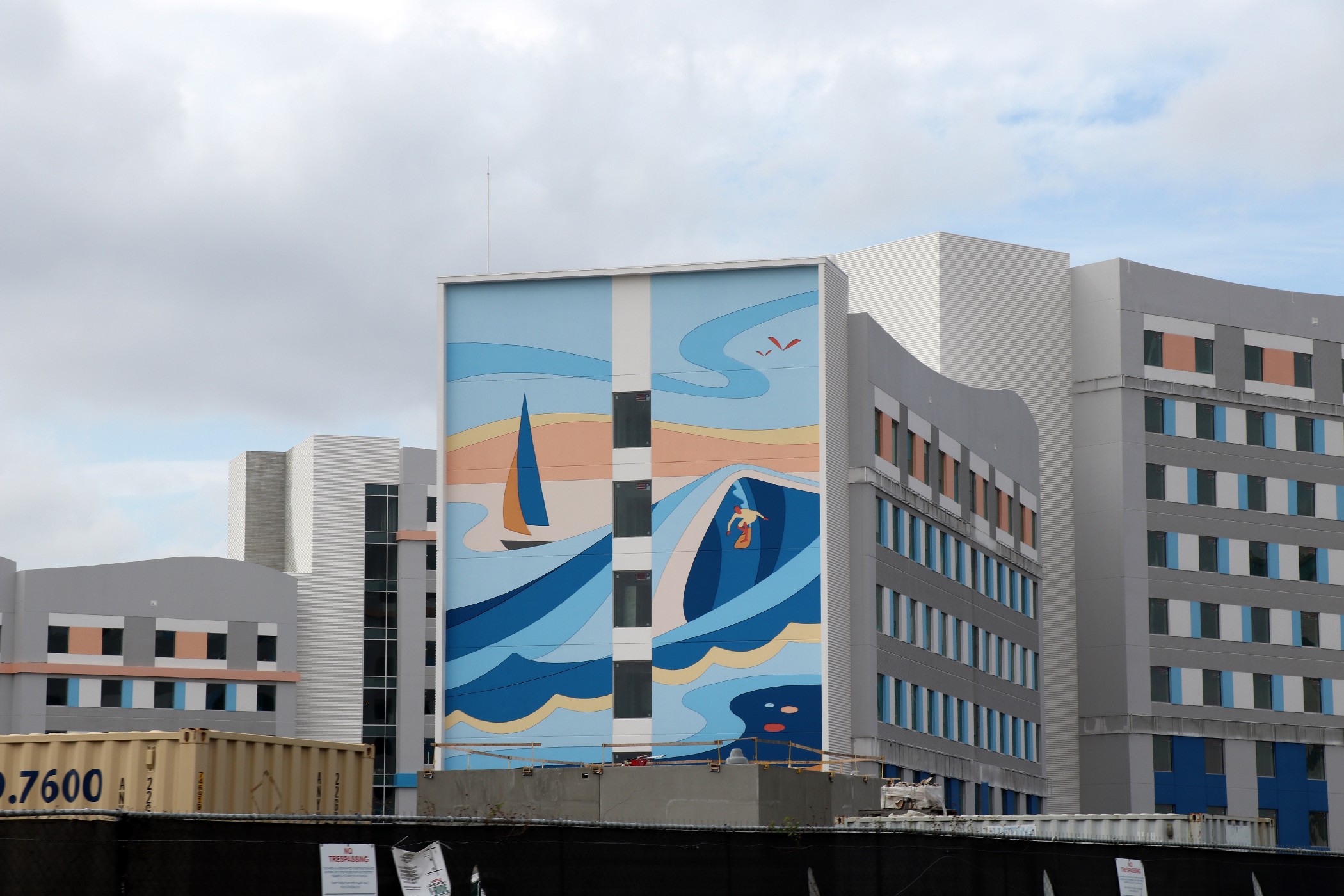 Painting continues on the Surfside section of the resort, with most of the murals located on each end almost completed. With the Resort opening this August, we should see construction shift focus to the entrance and pool areas.
