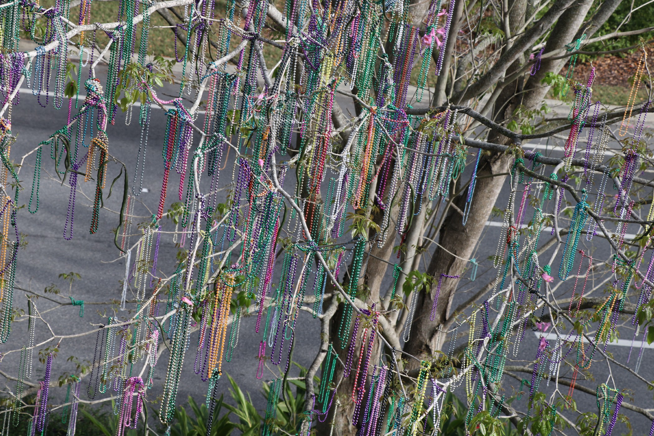 With what has become an unofficial tradition, guests are adding to the Mardi Gras bead tree as they make their exit from the park and back to the parking garage. The tree usually remains untouched until Mardi Gras ends.