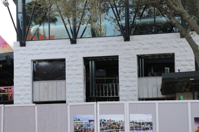 Universal Orlando has yet to formally announce Emeril’s replacement. Since our last update, little has changed to the exterior. Orange metal poles have been added, which could be used for a new patio area structure.