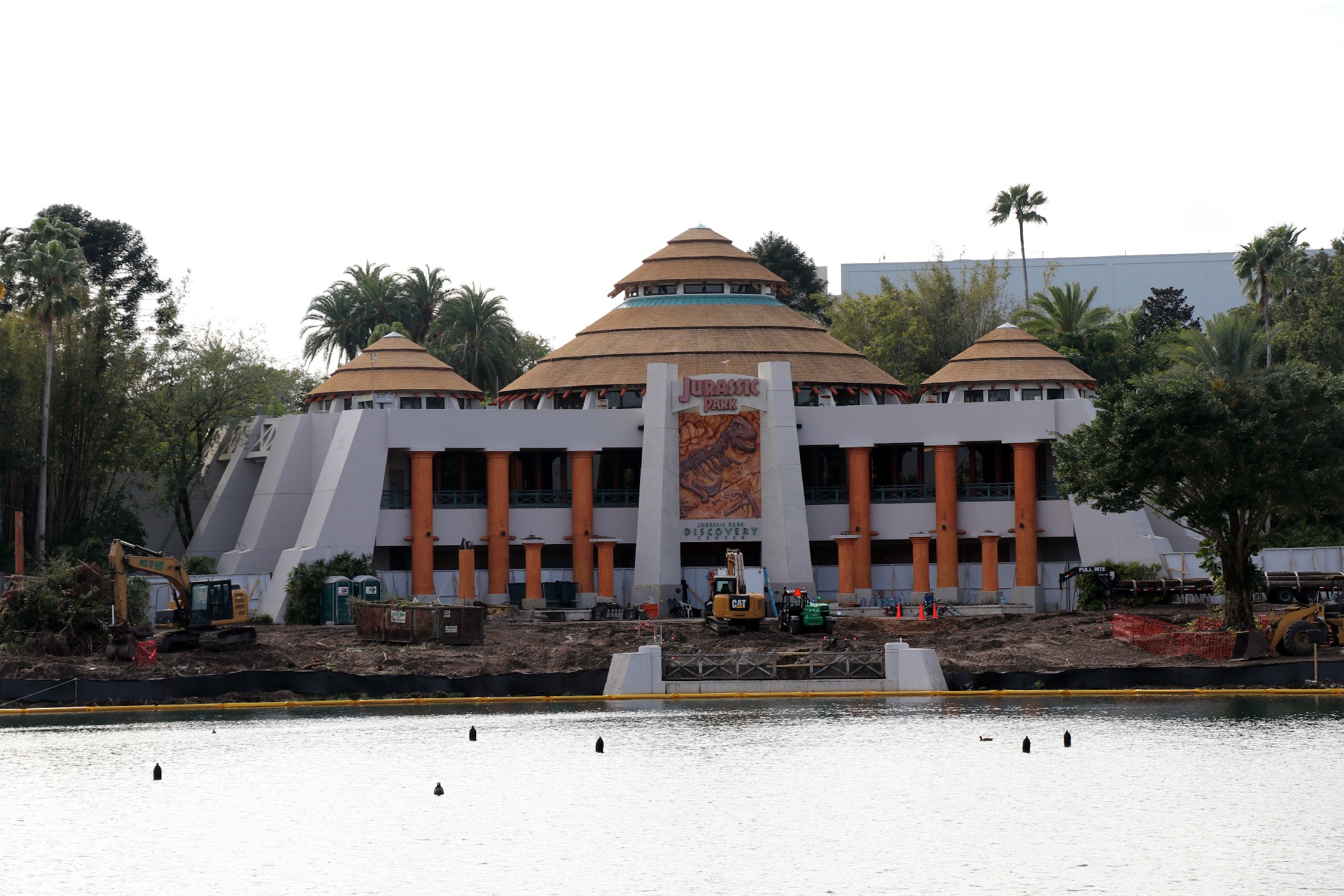 The Jurassic Park waterfront has been completely gutted, with most of the concrete and foliage removed – leaving the view across the lagoon radically changed, with some areas now being seen for the first time.