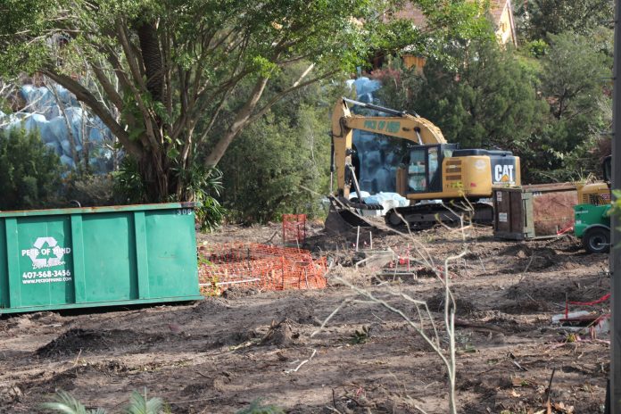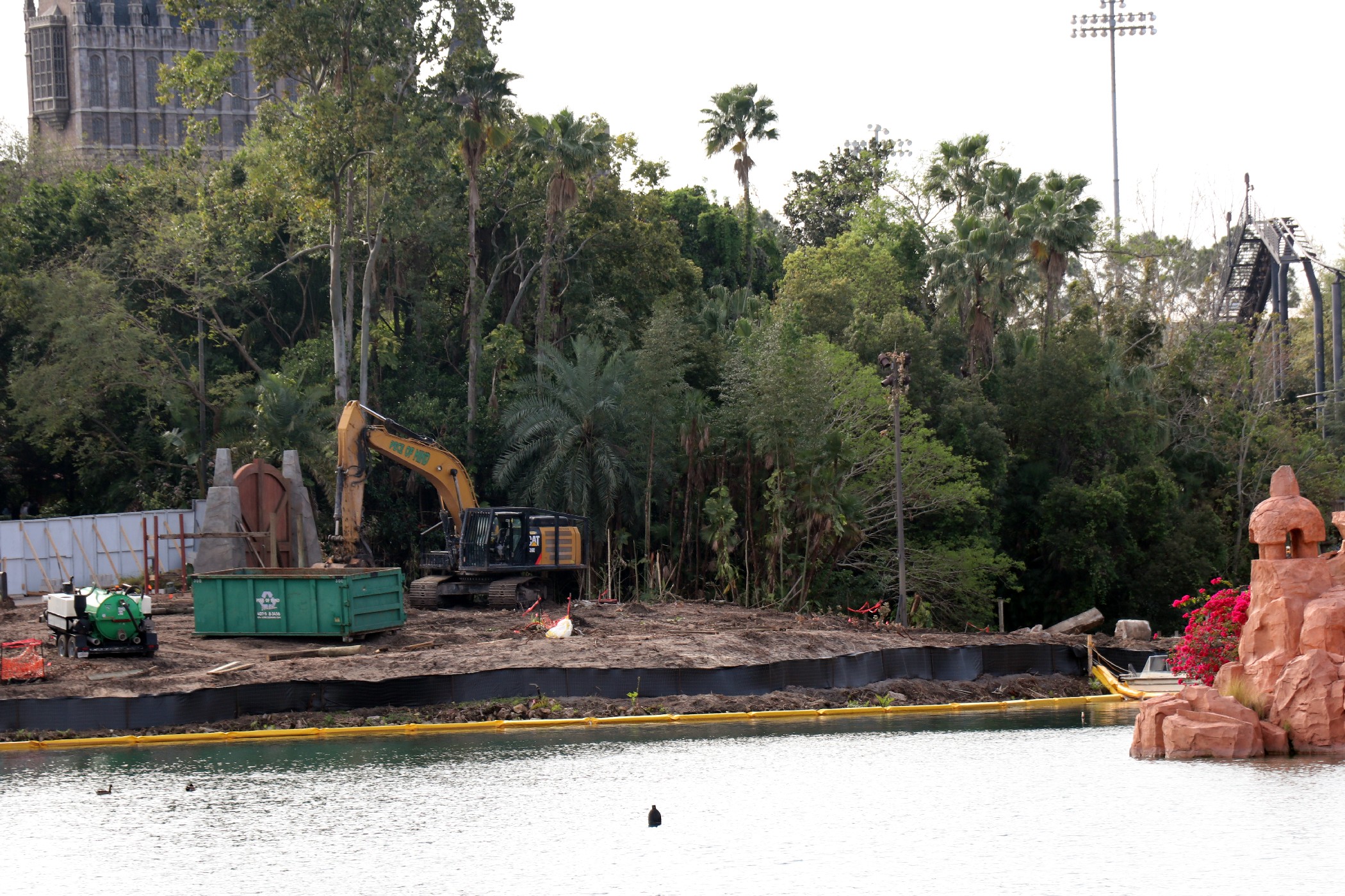 The Bypass Bridge is almost gone as well, with foliage around the bridge/Mythos area also cleared out. Rumors indicate a more “permanent” themed bridge will be built in its place and should be open by the Summer months.