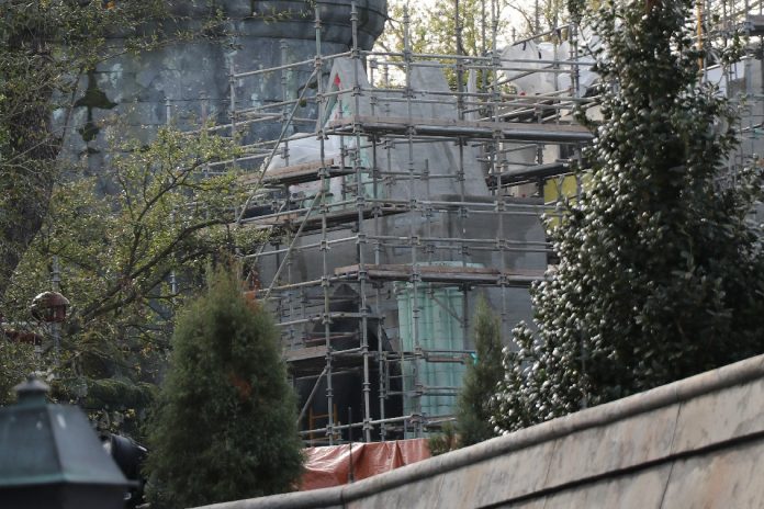 Universal recently announced the coaster’s name, along with the opening date of June 13. We should be hearing more information soon regarding the ride experience. As far as construction, most of the focus has shifted to the castle entrance. Scaffolding has also been set up near the ride’s entrance, indicating we should see some signage soon. With many views blocked due to construction walls and trees, it’s hard to see what else has been completed.