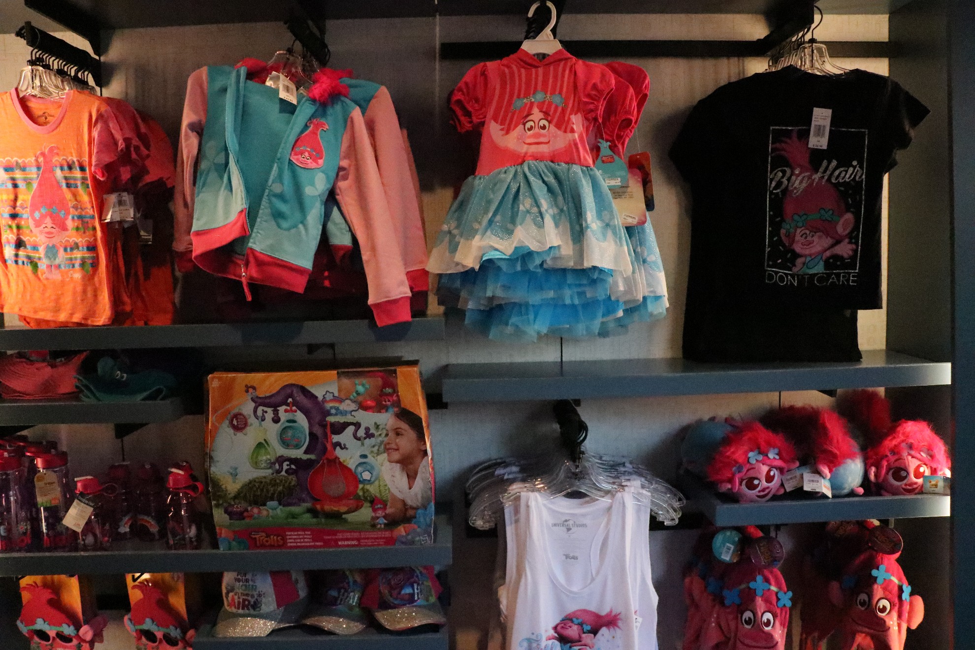 The Wossamotta U shop has now begun to sell Trolls merchandise. Before, the store exclusively sold Secret Life of Pets merch; now it’s a 50/50 split.